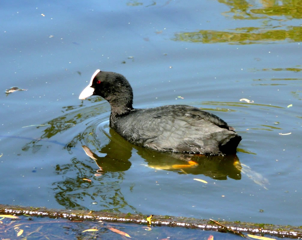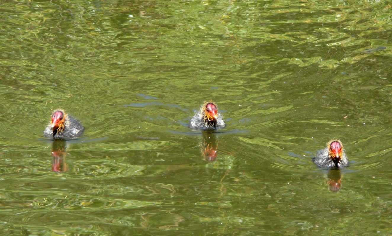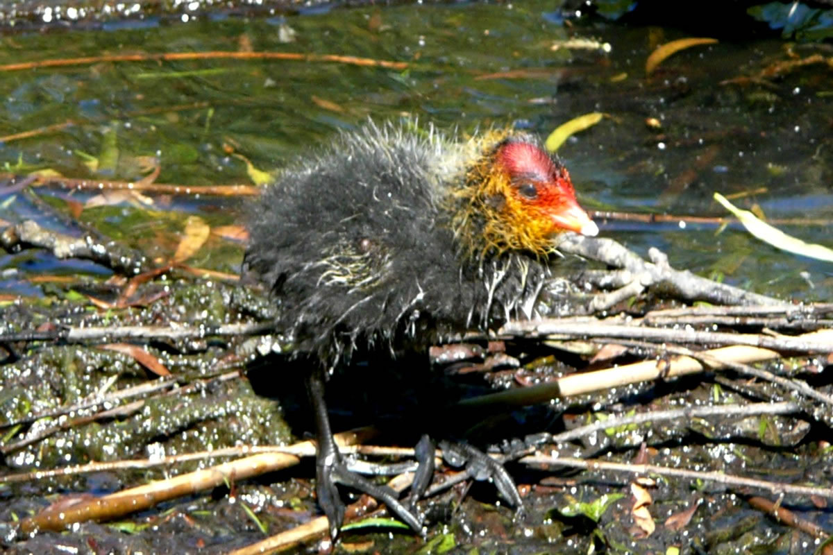 Rode Oogen! So en Vagel mutt ja vun en annern Steern kamen. Welk anner Vagel bi uns hett woll rode Oogen? Man de opwussen Zapp hett welk. Schoonst he en ganz harmlosen Vagel is he fritt bloots Waterplanten un lütte Insekten , süht he mit de roden Oogen reinweg beten unheimlich ut. Un de lütten Zappen sünd noch veel exzentrischer antosehn! Da swemmt se, kiek mal!