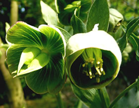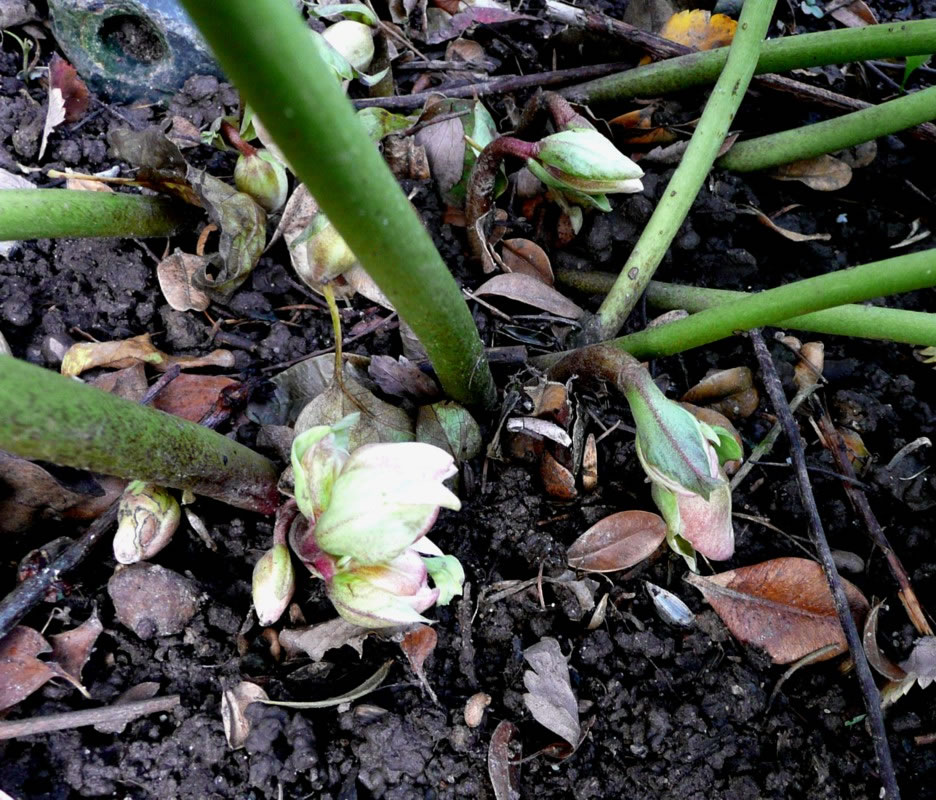 hebbtem so goo Dütt allens harrn de Bloom, de beiden Striethamels in den Goorn höört. Dor meen de rode Sneeroos to de witte Sneeroos: "Wi wüllt ni wedder miteenanner strieden. Freut wi uns, dat wi hier in den Goorn so gut wassen köönt!" De gröön Nieswurz nik mit den Kopp dorto un reep vun ünnen ut den Goorn: "In't Öller seht wi doch alltohoop teemlich liek ut. Uns smucken Blöden sünd denn so'n beten griesgröön!" All Biller: © Antje Heßler