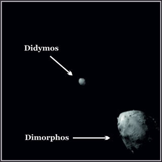 Dei Forschker-Mannschkup* werd mit boddenstaohn Teleskope ünnerseuken, off dei Dart-Upschlag den Ümloop van Dimorphos üm Didymos ännern dait. Dei Forschkers räket dormit, dat dei Upschlag den Ümloop van Dimorphos so üm 1 Prozent off bold üm 10 Minuten körter maokt. Dat naue Mäten, wo daone dei Asteroid afflenkt wörd, hört tau disse groote Testaktion. Asteroid Didymos (baoben lünks) un sien Mini-Maond Dimorphos,