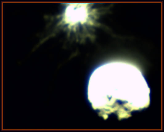 duurde dütlick länger as bi DART. Dei neegsten Biller sünd upnaohmen van LICIAKas ein poor Minuten nao dei vörseihn Kollision van dei NASA-DART-Sonde an'n 26. September 2022. Dimorphos is dat Objekt achtern.