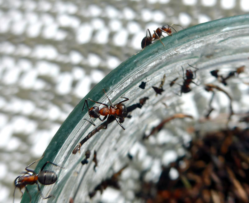 Liekers warr ik de Eemken wedder besöken. Ik müss doch kieken, woans se mit ehr Vörjahrsarbeiten vörankemen. Toeerst müss nu de ganze Ameisenstaat peu à peu opweckt warrn denn deep binnen un ünner de Eer slaapt noch welk. Mien muntere Gäst ut dat Marmeladenglas un ehr Kolleginnen draagt de eerste Warms na binnen, bit dat dor komodige 25 Graad hett. Denn eerst geiht dat Leven so richtig los! De ole Königin binnen in'n Hupen fangt denn al an, Eier to leggen. Un de Arbeiterinnen repareert den Hupen. Dor hebbt se düt Johr orig wat to doon! Wokeen düsse Löcker in den Hügel maakt hett, dat wull ik ok geern rutfinnen un ob se de Löcker in ehrn Hügel dicht kriegen wöörn! Foortsetten folgt! 28.2.2016