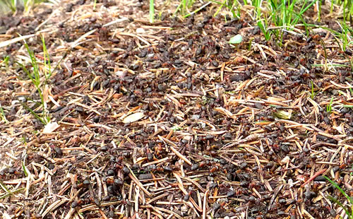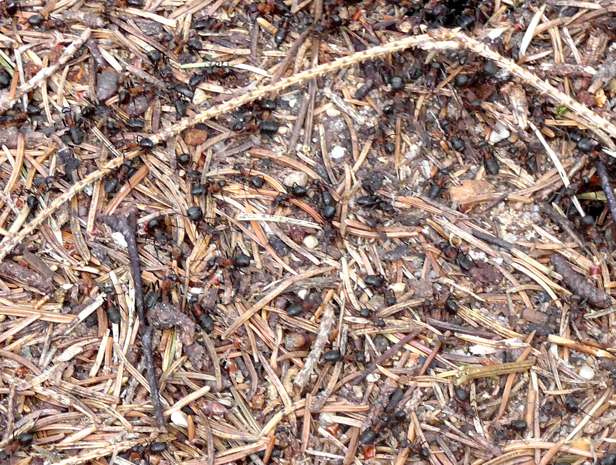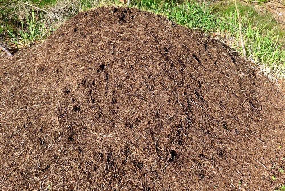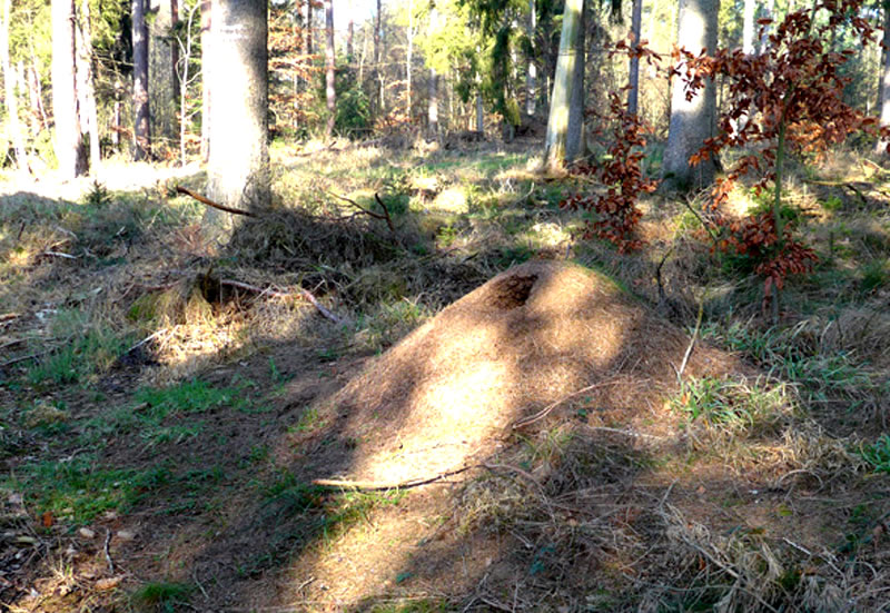 Un wokeen harr nu de Schuld an düsse Löcker? Weern dat etwa Kinner, de in'n Woold speelt harrn? Nee! Den Verdacht harr ik ok man denn heff ik de Öveldeders sülven sehn: Spechte!! Leider weer ik nich fix noog, se to knipsen. De frechen Gröön- un Swartspechte weern dat. Se harrn wedder ganze Arbeit leist. Mit ehr lange kleevrige Tung langen se deep in den Eemkenhügel un möken grote Löcker in den Hügel. De Käverlarven weern en to gode Mahltied. Ok anner Deerten harrn mitkregen, dat dor en gode Mahltied to halen weer. Sogoor Wildschwien dörchwöhlten mitünner de Eemkenhügel. Dor bleev denn grote Schaden na. Leeg de Eemkenhügel dicht an en Footweg, weern dat ok oftins Minschen, de mit en Regenschirm oder enen Stock in den Eemkenhügel rümstochern. Ok so kaamt Löcker in den Eemkenhügel. Aver de flietigen Eemken schaffen dat ümmer wedder na de Winterküll den Hügel wedder hertorichten. Dorna weer en Sünnenbad up de Kupp vun den Eemkenhügel fällig. Nu weern ok de letzten Langschläfer waak. De warme Sünnenschien harr se in Swung bröcht. Dat weer en Gewimmel up den Hügel. Aver all wüssen wat se to doon harrn. Wat de Sünn doch allens tostann bringt! 20.3.2016