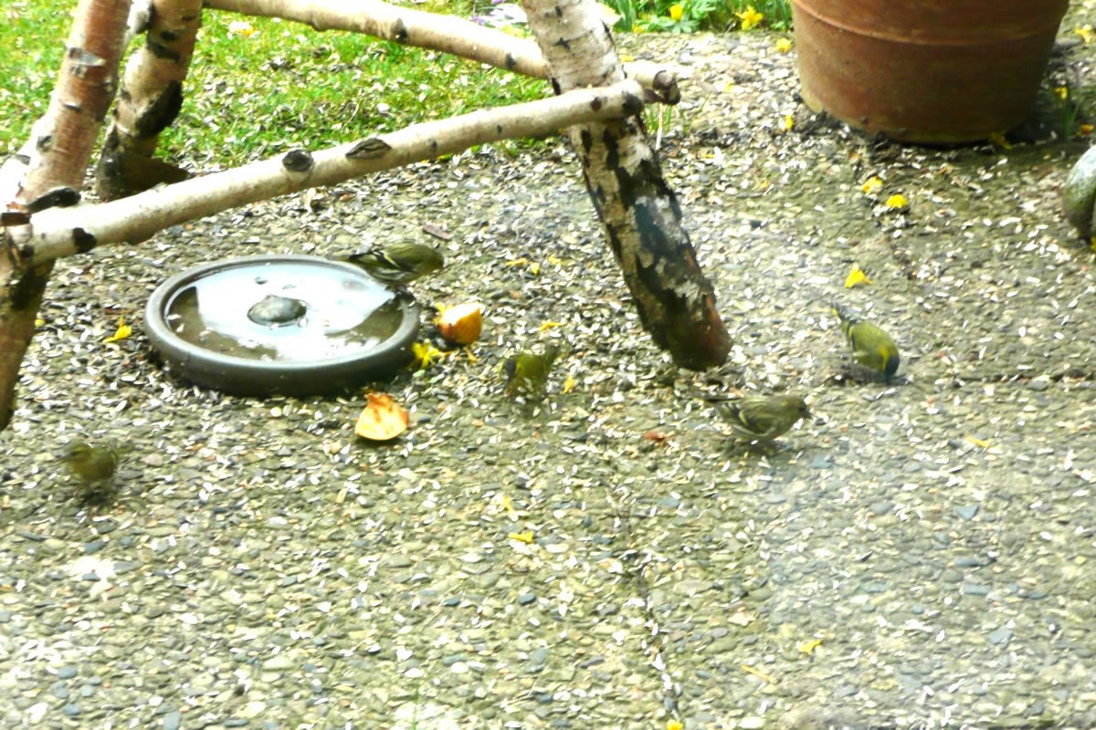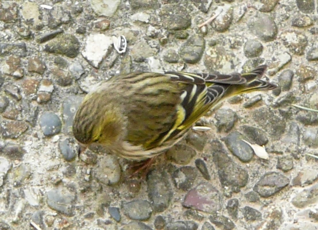 Sehgen meist de In mien Vagelbook heff ik en Bild vun so'n lütten Vagel funnen. Dat weeren Erlenzeisige, mit latinschen Naam Carduelis spinus. Sowiet ik dat utmaken kunn, weern in mien Vagelhuus luder lütte Erlenzeisige. Fruunslüüd un Mannskerls! Bit to twölf Vagels heff ik mitünner tellt. Ievrig un heel flink weern se an't Picken. Aver sowie ik mi röög un to dicht an de Finsterschiev keem, sünd se altohoop wegflagen. De Ellernzeisige sünd lütte gesellige Finkenvagels. Bi