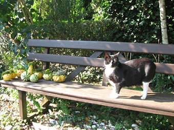 vun Marita Pollak Grood hebbt uns Blomen noch so scheun bleuht, un nu bin ik dorbi, mit slecht Geweten de Bleuten un welken Bläder all aftosnieden. Grood de Bummelblomen stohn noch so scheun prall dor. Uns Noverskatten Peter un Paula sünd op Beseuk komen, se hebbt sik beide op en Goornbank in uns Steengoorn sett, un kiekt mit groten Ogen intressert to, wat wi so drievt.