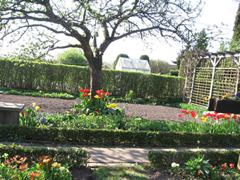 De Tagetes stünnen ok noch in al ehr Farvenpracht dor, mit Beduern heff ik se all rutreten, over dat weer mi noch sworer fullen, wenn se Frost kregen harrn, dat is jümmer en drurigen Anblick. Mien Mann harr se meuhsom in Fröhling optrocken, un ik harr se mit inplant. Bannig kohl süht nu uns groter Buerngoorn ut. De Appelbööm hebbt düt Johr in Fröhling twoor vele Bleuten hatt, over wenig Frücht ansett. De Winter weer lang un streng un de Sommer männichmool to hitt un dröög. De Immen sünd in Fröhjohr nich togang komen, männichen Immenstamm is dörch en Süük ingohn.