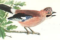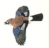 - Garrulus glandarius - Hester Familje Ravenvagels - Corvidae Ünnerfamilje Sperlingsvagels Heurt to de Singvagels - oscines 34 cm lang is he, woll duvengroot. |