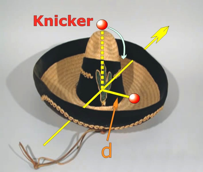 un wennen, aohne dat dor wat taun Mäten bi rutkump. Dat lutt ansik orig einfach. Schaode blots, dat disse Symmetrie verstäken is. Dat kann man sik vörstellen as einen Knicker, den man baoben middig up einen Mexkaonerhaut mit eine breie Krempen legg (süh Bild). Disse orig symmetrischke Taustand geiht aover drocke twei: Dei Knicker kullert van Baoben daol un bliff up eine wisse Stäe in dei Krempen liggen. Wenn Haut un Krempen perfekt rotatschionssymmetrischk sünd, is datn echten Taufall, of dei Knicker upn End rechts, lünks, achtern of vörne ligg. Dorup kump et uk nich an, blots dorup, dat dei Knicker eine Richtung wiest un so dei Symmerie flüsch geiht, wo doch eiers aale Richtungen den süftigen Rang hebbet. Dor sägg man denn spontaonet Symmetriebräken tau. För us is blots dei asymmetrischke Taustand tau seihn. Wo dei woahre Symmetrie dei Mexikaonerhaut utsüht, dat wätet wi nich.