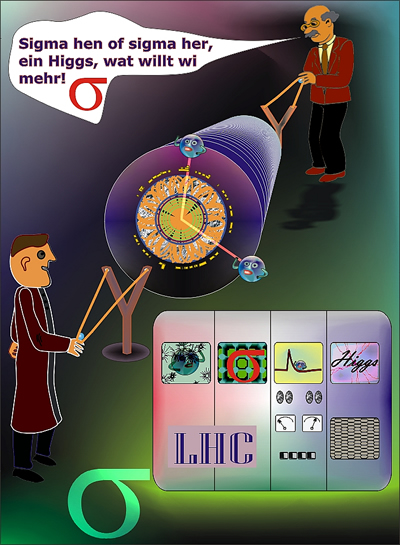 Nu schall et dat Higgs-Deilken wän, aover staotistischk up't leßte wisse sünd sik dei Forschkers noch nich. Eiers wenn noch mehr unnersöcht werd, kann man seggen, of et wohrhaft dat noch fählen Deilken för dat Standardmodell is. All in'n Dezember 2011 geef et dei eiersten Anteiken för dat neie Deilken. Don wören dei Haupt-Signaole gägen dei Rauschsignaole noch nich stark naug afsettet. Nu ligget disse neien Resultaote mit mehr as dubbelt so väle Daoten vör.