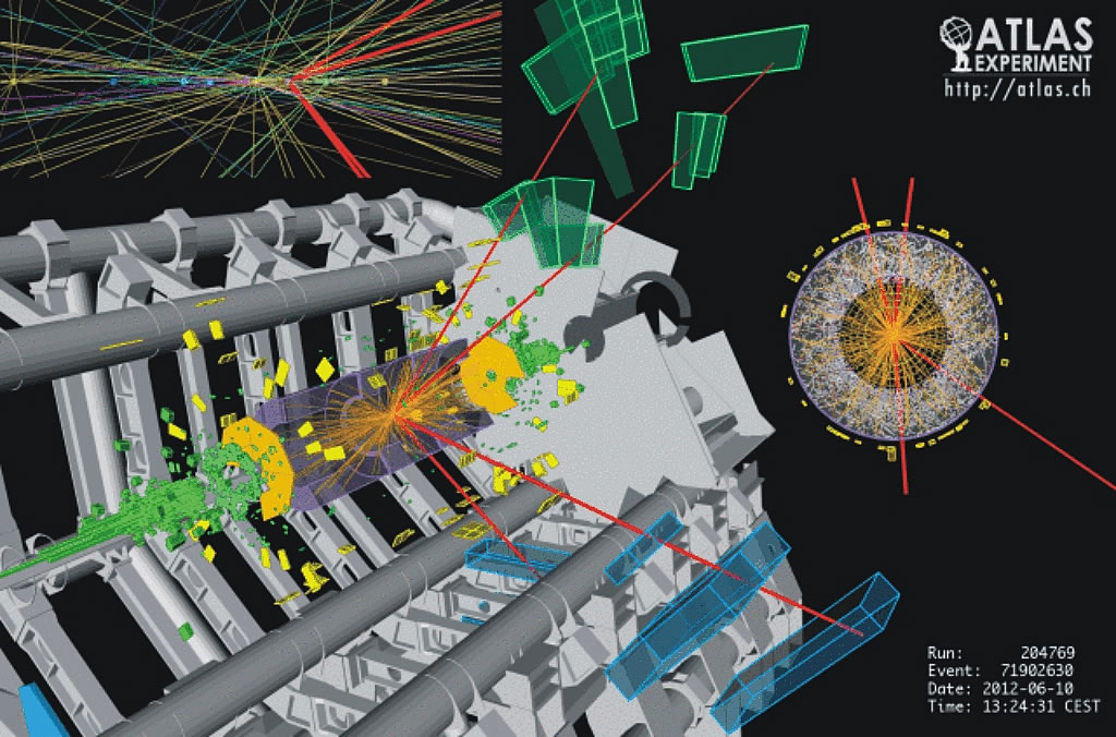 Dissen Fund mellde dat CERN an'n 4. Juli 2012. Dei Daoten wörden tüschken April un Midde Juni mit dei Experimente ATLAS un CMS spiekert. Dei Experimente hebbet dei Reaktionen, dei dör dei Kollision van Protonen mit üppste Energien utlöst wörden, unnersöcht. In den ATLAS-Detektor kunnden in eine Sekunde eine Milliarde Protonen tausaomestöten. Dat Deilken, wat man nu fünnt, wörd meest äöver dat Updeilen in twei Photonen un twei Z-Bosonen naowiest.
