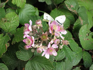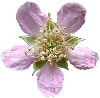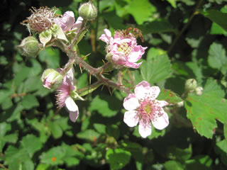De Brombeer-Blöden sünd witt orrer licht rosa. Se blöht