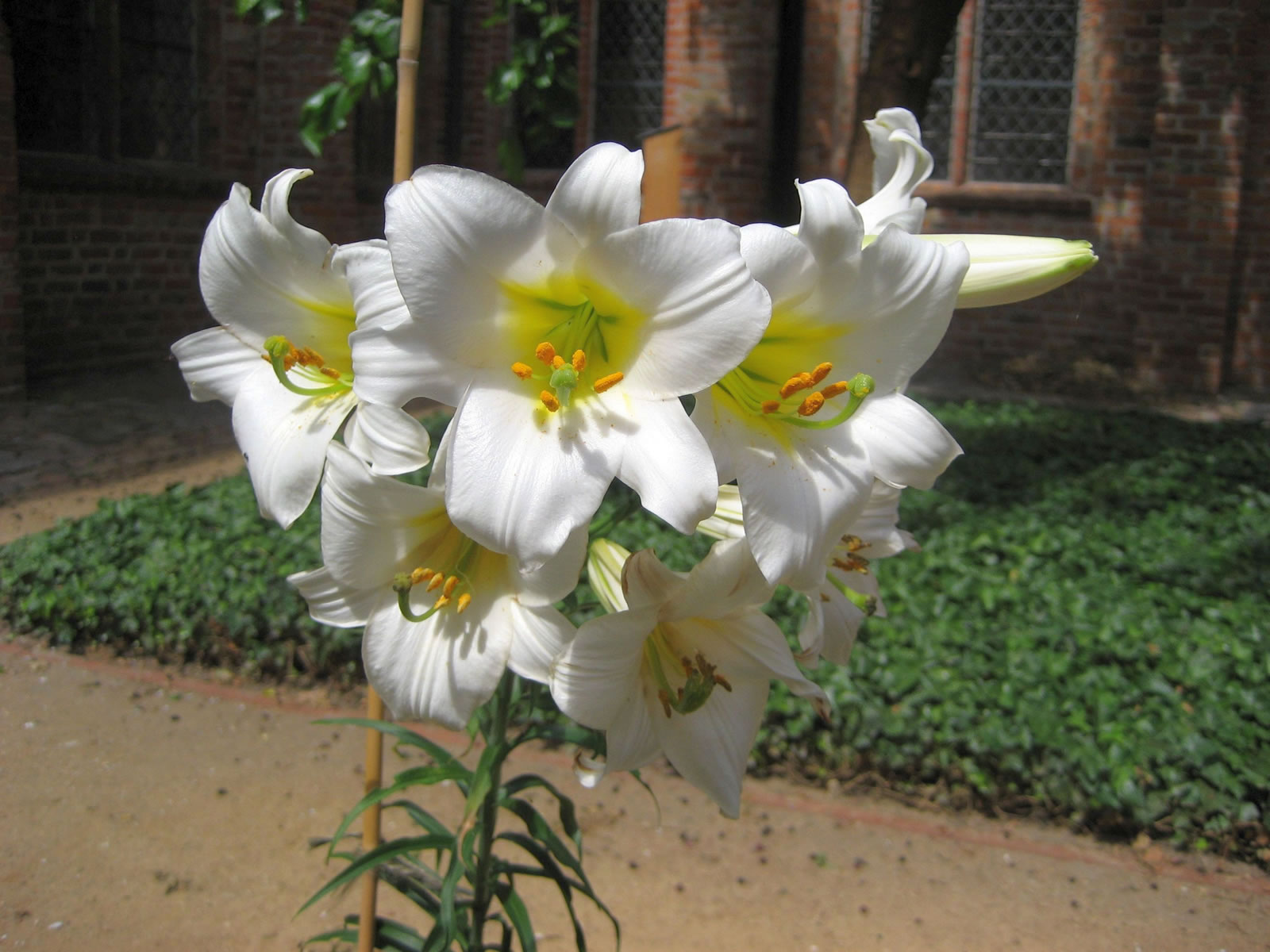 De Madonnenlilie heff ik aver ok oft in'n Kloostergoorn un ok in'n Bibelgoorn sehn, un dor harr se den Naam "Marienlilie". En schöön Naam, en Naam, de disse Plant mit to de Marienplanten tellen lett.