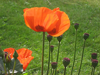 Ik laat mi in'n Sommer ok jümmers wedder verführen, en poor vun de lüchen Blöden to plücken, se sünd eenfach to schöön. Aver denn? Al na heel korte Tiet fallt ehre groten roden Blödenbläder. Se liggt nu rund üm de Vaas rüm, dormank de düüstern Stoff-Fadens un de düüster Blödenstoff. Wirklich schöön, blots de witte linnern Dischdeek, de mütt ik denn waschen. |
