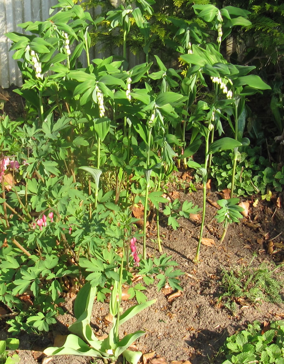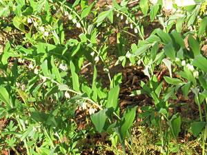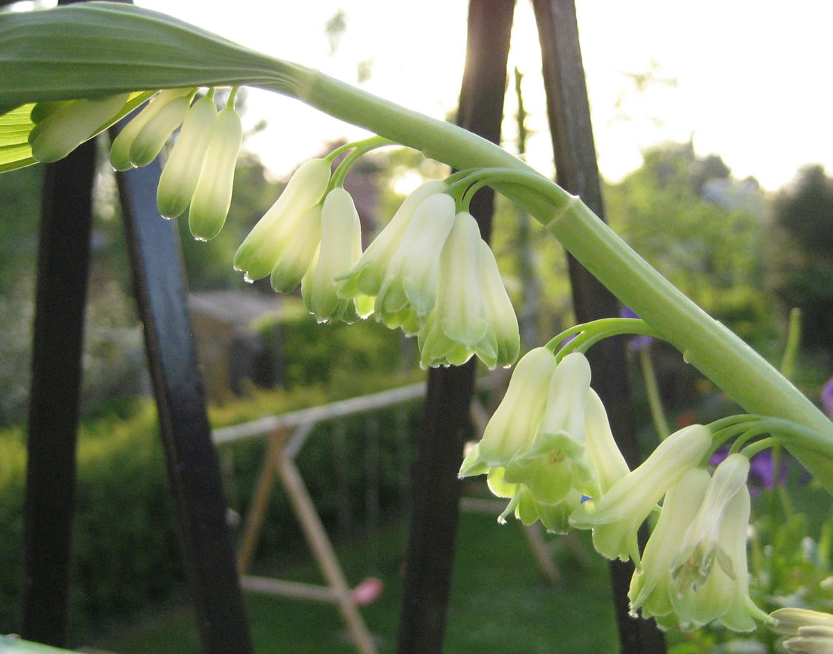 Olle Krüderböker maakt noch keen Ünnerscheed mank Salomonsiegel (Polygonatum odoratum) un Weißwurz (Polygonatum officinalis Allioni). En Plant mit den Namen Salomonsiegel kann man natürlich in'n Bibelgoorn finnen. Dit is aver ene Waldplant. Se bruukt Eerd, de Kalk in sik hett. De echte Salomonsiegel hett kantig Stengel. He hett lütte witte licht duften Blöden-Glocken, de in en gröön Spitz endt. En beten wat süht de Salomonsiegel ut as en bannig groot Maiglöckchen. Siene Beeren sünd blaag-swart. Salomonsiegel hett jüst so as Maiglöckchen giftig Glykoside in sik. In fröher Tieden wörr de Wörtel vun unsen Salomonsiegel as Amulett dragen, dat Glück bringen sull. Noch hüüt sall dat Bruuk sien bi de Sorben in Oberlausitz, se buddeln an'n 24. Juni de Wörteln vun disse Plant ut un verwendt de as Amulett. Se nöömt dor de Plant Johanniswürz. Ik heff ok den Namen " Jageteufel " för den Salomonsiegel funnen. De Naam wiest dor up hen, dat de Lüüd glöövt hebbt, dat de Plant de Wörtel, dat Amulett böös Töver twei maken kunn, böös Geistervolk verjagen kunn. Mien leef Mann vertellt, dat sien Opa jümmers seggt hett, dat he bi afnehmen Maand de Wörtel vun 'n Salomonsiegel för poor Daag in sien Büxentasch mit sik rümdragen hett. Un worüm? Ja, dat sull en goot Mittel gegen Liekdörns sien. |