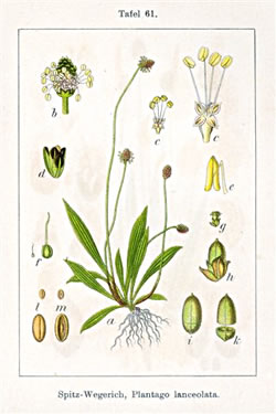 Dat Kruut för'n Märzmaand: Spitzwegerich vun Anke Nissen Plantago lanceolata Familie Plantaginaceae = Wegerichgewächse ![]() |