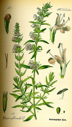 Herba Hysopus, also Bläder ahn den veerkant Stängel. | |