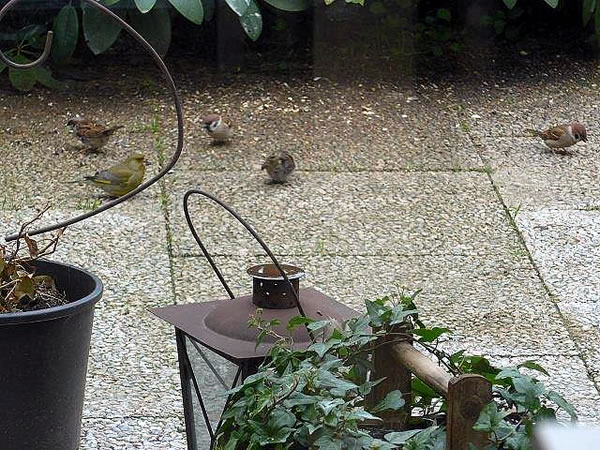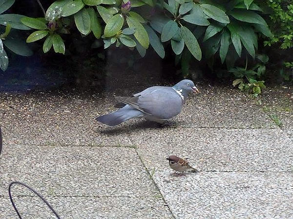 Mien Fründ Michel hett siene Terrass vör de gode Stuuv un dorvör stoht dicht an dicht Rhododendron. De Büsch stoht so eng, dor kümmt keen Inbrekers dörch. In düsse Heck leevt en ganzen Lünkenstoot. Sünd meist mehr as fofftig Deerten. Wokeen sowat vör sien Finster hett, de bruuk dat hele Johr keen Puschenkino, so veel Leben is in de Hecken. Michel un siene Brigitte kennt all welk vun jem un weet Bescheed üm jemmer Rangstell in ehr'n Vereen. Un ok, wenn af un an 'ne Drussel or en Specht vörbikümmt un sik den Buuk vullhaut: de Lünken koomt nich to kott. Michel hoolt dat Fodder sackwies. Blots dat de dorigen Duben jümmers mit vun de Partie sünd un sik mit Larm bedankt, doröber argert he sik. Eh dat de op de Feller goht un Fodder seukt, kiekt se lebber glieks no Sünnenopgang bi Michel vörbie. De is mit sien Nerven an't Enn.