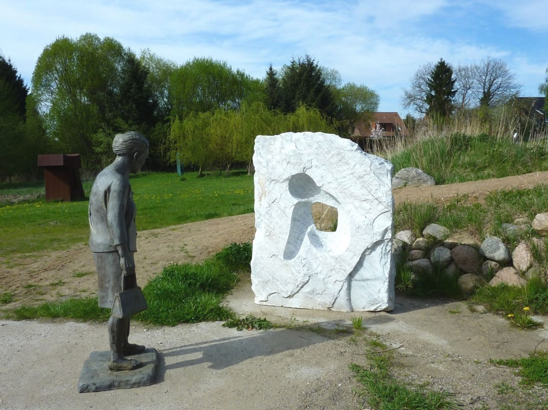 Egentlich sull uns Maifohrt an 1.Mai losgahn. Aver an den Dag weer dat rusig un kolt. De Sünn harr sik achter de Wulken verkrapen. Dor hebbt wi uns Utfohrt up den neegsten Dag verschaven. Wat en Glück! An Moorn haal uns al de Sünnenschien ut Bett. Na't Meddageten güng uns Fohrt los. Uns Ziel weer de Skulpturenpark in Groot Grönau. Ünnerwegens lüchen al de ersten Rapsfeller. De Wischen harrn en witt Schuumkleed mit Storkbloom (Wiesenschaumkraut) oder en sattgeel Kleed mit Botterbloom anleggt. In den Skulpturenpark stünnen de verscheden Objekte mank ole Bööm up enen sattgrönen Grasteppich. En lütte Beek slängel sik dörch den Park. An den Rand vun de Beek wussen seltsam hoge un grote Grashümpel. De müssen wi uns ankieken. Aver de Ünnergrund weer natt un moorig. Dat hölp aver allens nix, ik müss neger an de Hümpel. De müss ik doch nip un nau in Ogenschien nehmen un knipsen. Na uns Fraag, wat dat is, wüss nümms en Anter. Dat is seker en Oort Reet, weer de Meen. Nadem ik en poor gode Biller in mien Knipskassen harr, keken wi uns noch wieder üm.
