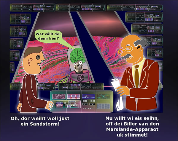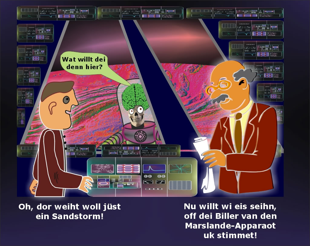 Labor up Rullen landet up den Mars van Ludgerd Lüske Dei ganze Neiwind-Mission op Platt: hier |