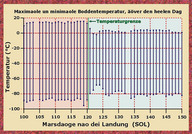 Dat Bohrexperiment geiht denn los nao einen nau fasteleggten Plaon. Tau eiers werd mit eine 2 cm deipe Bohrung dei Schlagapparaot utprobeiert. So kump noch kien Steinmähl in den Probenupnähmer van den Bohrer. Aover so käönt dei Forschkers naokieken, of dat Bohrmähl uk so utsüht, as man vörutseihn deit. Eiers midde Februar is dei Tied pass för den Daotenverkehr tüschken Neiwind und dei Nasa-Stationen. Dat ligg doran, dat up dei Eern un up den Mars dei Daoge nich glieker lang sünd. Ein Marsdag is 40 Minuten länger as ein Eerndag. Wenn dei Daogestieden halwegs synchron loopet, denn is naug Tied dor för dei Kommunikation daogsäöver tüschken Neiwind un Nasa/JLP-Stationen. Dorup teuvet dei Nasa-Lüe mit Spannung.