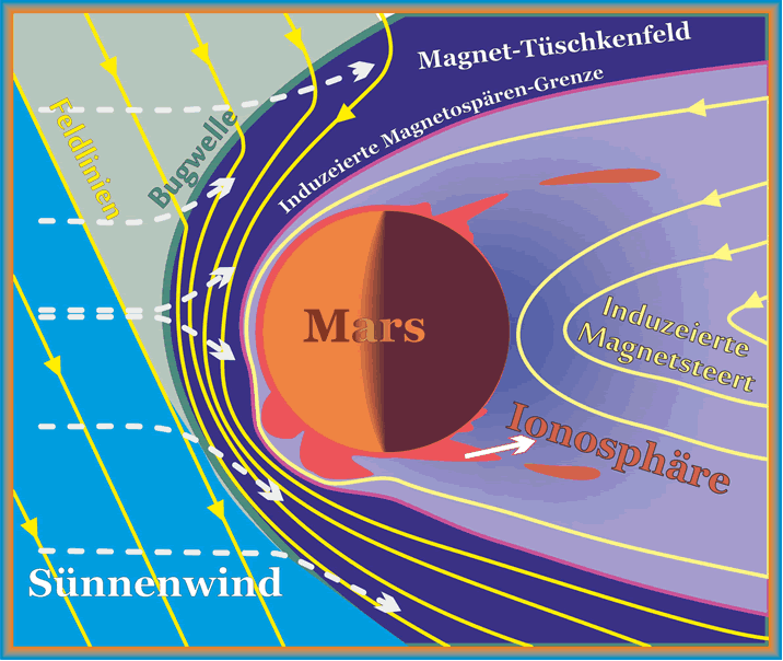 den Mars. Dei Sünnenwind bring sien Interpanetoret Magnetfeld