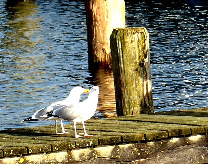 En Sturmmöwenpoor flöög vun Poller to Poller. Narms