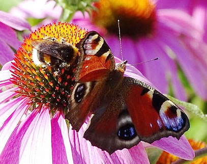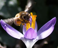 In Pagels' Goorn in Leer an't Appelspalier heff ik düsse wunnerschöne Imm knipst, de in Gesellschap vun en lierlütt Flegendeert freedlich ehr Arbeit nageiht. Op en gode Appelaarn in'n Harvst! De Biller köönt Se per Klick