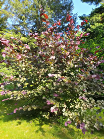 De Druvenkirsche blöht opstunns, dat dat Aart hett. Ehr Duft is so intensiv un stoffig-puderig, dat di dat reinweg den Aten versleit, wenn du ünner so'n Boom steihst. Meist as'n Rookbombe. Keen Wunner, dat de Insekten op den Struuk fleegt; sünnerlich Falter un Flegen sünd dor to sehn, se finnt dor Pollen un ok Nektar. Un in'n Harvst findt de Vagels dor Beeren, mit de se den Boomsamen wieder rümmersleept, För Minschen sünd de Samen avers swack giftig, de schullst also nienich eten. Wedder so'n Struuk, 'neem de Öllern oppassen mööt, dat se ehr Kinner vör wohrschuugt! Ik mutt nu weg, krigg keen Luft mehr vun den dicken Duft. Dat Bild köönt Se per Klick vergröttern! Marlou Lessing |
