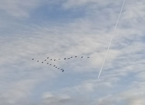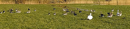 Jedeen Avend in düsse Johrstied: grote Swarms vun Dohlen un Kreihn. Jüst nu even ok en lütte Göös-Formaschoon. De Göös treckt bald weg, avers de Dohlen un Kreihn blievt hier un bildt liekers de groten Swarms, sünnerlich avends, denn se slaapt alltohoop in grote Kolonien. So sünd se sekerer vör Fiende. Mennigmaal slaat sik Toogvagels dorbi an. Opnahmen in #Elmshorn blangenbi: #supernormal (all hier hebbt en Vagel en coole Ort för en Nest!). De Biller köönt