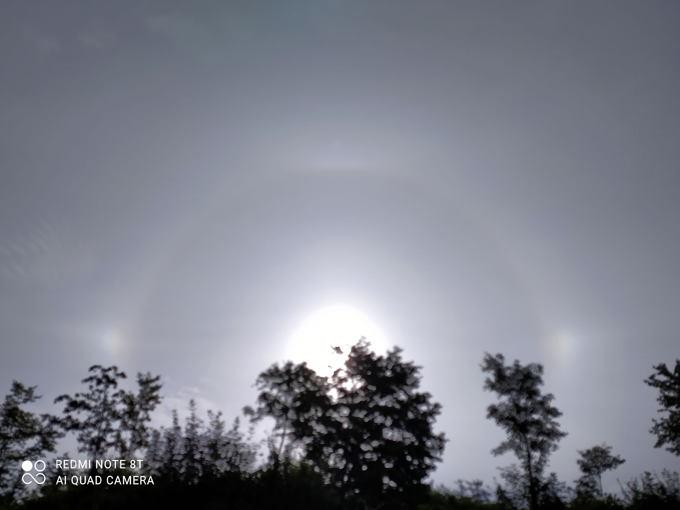 so Eerst nu heff ik sehn, wat dor allens to sehn weer: de kumplette 22-Grad-Halo mit bavern Berührungsbagen un bavenöver noch wat (Bild links in'n roden Krink) is dat de Zirkumzenitalbagen orr etwa de rore, extrem rore 46-Grad-Halo? Ik harr dat al an'n Himmel schemern sehn un heff dat Handy eenfach hoochhollen... Sowat Schööns un Besünners faat mi so an, dat mi nu noch de Tranen kaamt. De Biller köönt Se per Klick