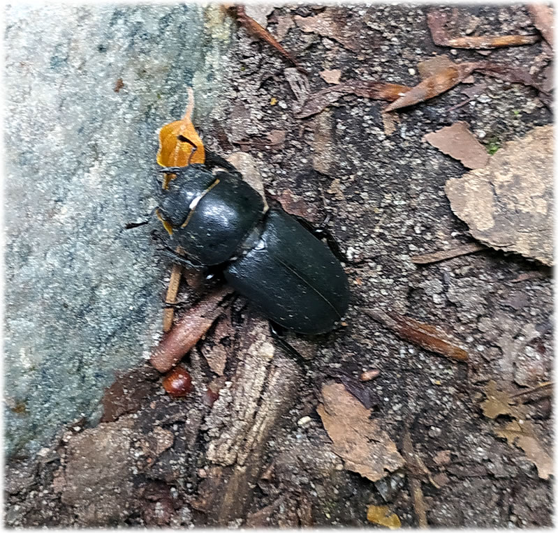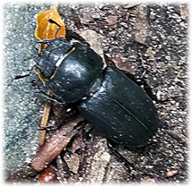 Dor, woneem de Holtweg sik langsam in'n Woold verleert, leevt en lüttje swattblaage Gesell: de Wooldmistkäver. Woso krabbelt he op den Weg rümmer? Wieder vörn liggt en Aartgenoss vun em, tweipeddt un dood! Woso geiht he nich in't Gebüsch?