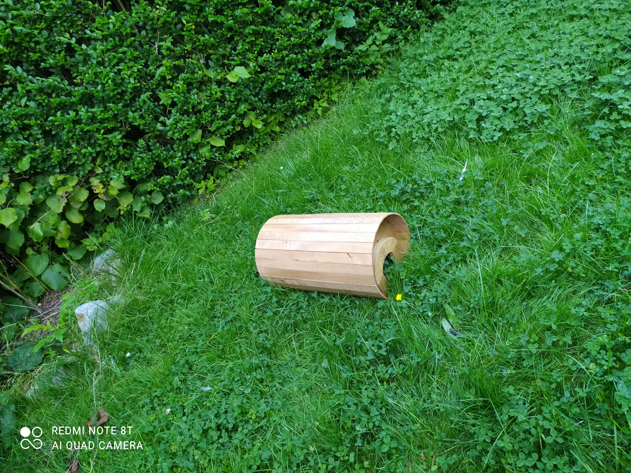 12.9.21 ....Dat Igelhuus Dat weer en Enkeltstück, Handarbeit, mien Schatz hett dat in't Schaufinster sehn un mitnahmen. Dull solide warkt, mit Platz för mehr as een Swienegel, leevtallig opdeelt in en richtigen Grundriss mit dree Ruums. Dat weer doch wat för Ewalds lütten Goorn! Dor wahnt ja en Swienegelfamilie, Öllern un en Handvull Jungswienegels, de Ewald jümmers fodern deit. Un för'n Winter bruukt de ja en Quarteer. Ewald maakt jümmers wat in en Eck mit dröög Loof un en Plane, man hier is ja noch mehr Komfort! Wi also hen na Wilhelmshaven, dat Huus bi Ewald afgeven un in'n Goorn platzeert. Ewald meent ok, avends weern de lütten Swienegel al dor west un harrn dat ünnersöcht. Introcken is natüürlich noch nüms is ja noch nich Winter. Avers se kiekt dat al as ehrn Besitt an. Is ja ehr Reveer dat dor miteens en anner intreckt, mööt se sachs nich beförchten. De Biller köönt Se per Klick