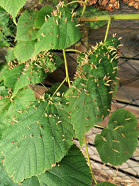 Toeerst hebb ik dacht, wat dat lütt Worms sünd, de sik op de Linnenblääd sett hebbt. Avers dat is de Lindengallmilbe (Eriophyes tiliae). De Plant süht twaars nich so schöön ut, avers se geiht nich dorvun kaputt. De Deerten befind sick in de Gallen so warrt de "Stickels" nöömt, de op de Linnenbläder in de Hööcht staht. De Gallmilben sünd bloots 0,1 bet 0,2 mm lang un 20-50 µm (also 0,02 - 0,05 mm) breit. Se hebbt jüst 4 Beens, tellt avers as all Milben to de Spinndeerten. Se sluupt na 2 bet 3 Weken ut de Gallen un laat sik vun'n Wind wiederdragen na de neegste Linn lütt noog sünd se ja. De Biller köönt Se per Klick