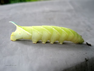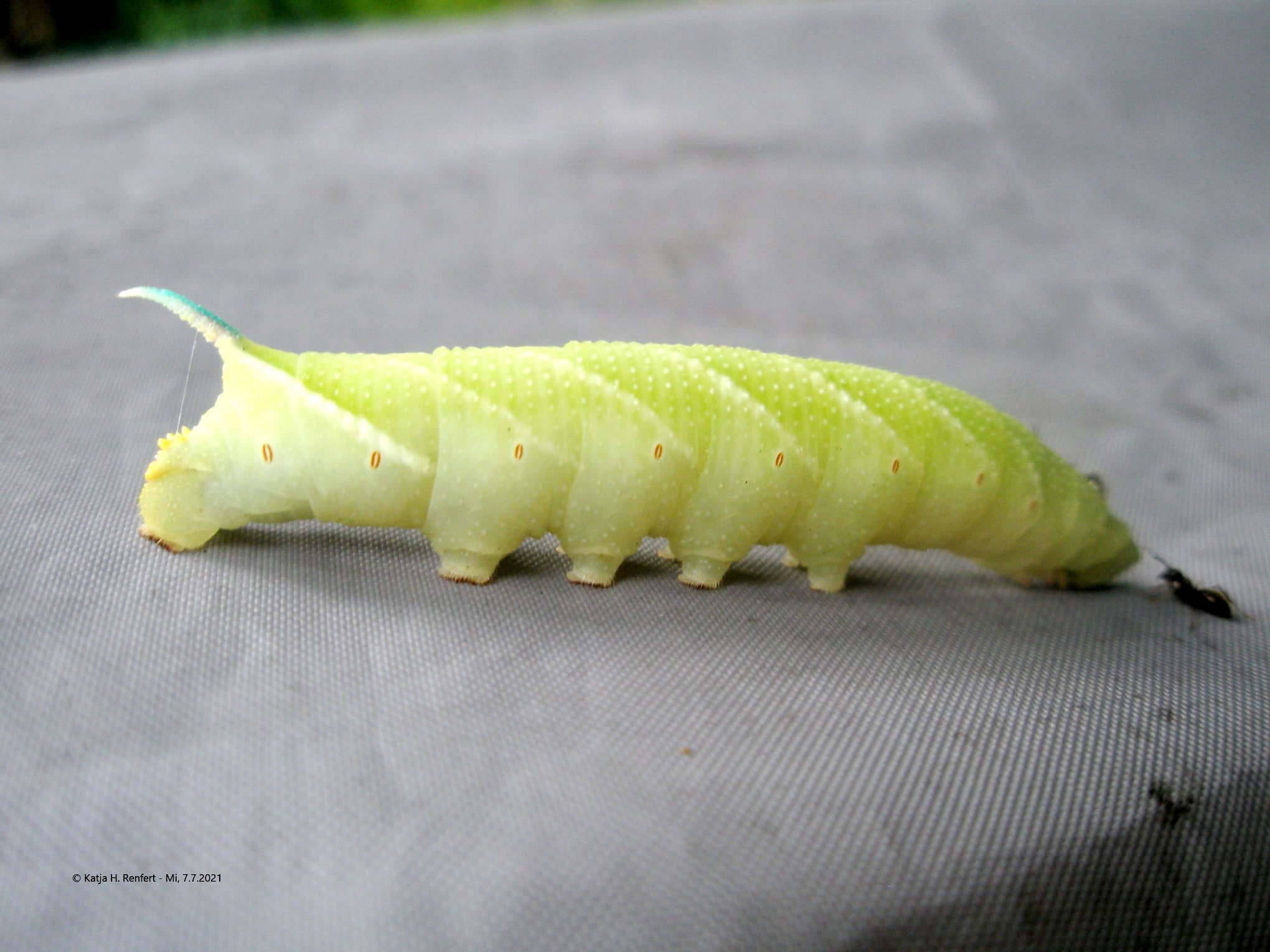 en Nachtfalter, de sülvst ehrder Bald warrt sik ok düsse Ruup verpuppen, so den Winter överstahn un neegst Johr as Falter wedder opduken. De Biller köönt Se per Klick