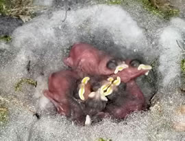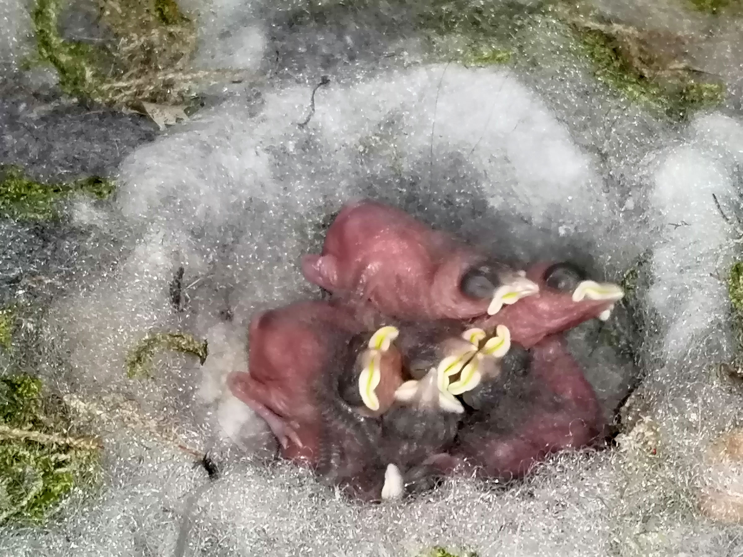In uns Garrnschuppen hett en Meesch ehr Nest. An 17. Mai heff ik de lütten Vagels opnohmen. Un jüst 5 Daag later is dat Nest al lerrig. Ik weet, dat de lütten bet 20 Daag bruukt, flügg to waarn. Ik hööp, dat bi mien de Tiet gau lopen is un se heel vergnögt in de Lüfte flattern doht... sünst kunn een denken, dat se en Neströver to Opfer fullen sünd. Avers denn weer doch woll dat Nest tweireten oder? Ik warr dor mal'n Kamera hinstellen un kieken, wat in tokomen Johren passeert. De Biller köönt Se per Klick