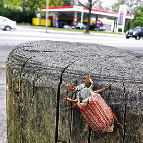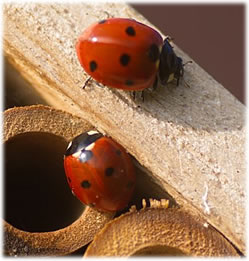 In'n Goorn is allens op eenmal los. De Planten, sogor de Rosen, kriegt Knubben un Bläder, de Immen sünd swoor in de Hornveilchen togang, de Vagels sammelt Nistmateriaal un ok de Marienkävers sünd waak, avers vör de nächtliche Küll söökt se denn doch noch mal Schuul, so as düsse twee Frünnen in mien Insektenhotel.