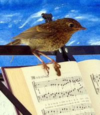 Twüschen de kahlen Telgen sitt en Singdroßel. Ehr Bost is sprenkelt as oles Pergament; ehr Sang is en Speel ut Wedderhalen un Variaschoon, as wöör he sik in den Morgen rinflechten. Twüschen de Strophen tuckt se an en Beer, man de is to hart un fallt dal. De Droßel kehrt sik dor gor nich an un singt wieder. Dat Licht warrt heller, de Dag fangt an. De Vagel grööt den Lent, de liesen kümmt. Dat Bild köönt Se per Klick vergröttern! Jasmin Apcin