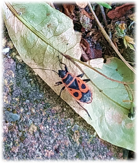 Dör mien apen Baadstuvenfinster is se rinseilt de roodbeente Boomwanz, een vun uns gröttste Wanzenaarten, sachs op de Söök na Fuchtigkeit. Landt is se denn ganz richtig in mien Baadwann, 'neem noch Waterdrüppen hüngen. Ik heff ehr behott wedder na buten in't Gröne verfracht. De smucke Wanz mit den orangen Fleck, de roden Been un den lustigen Punktrand driggt en dunkel Bruun dat is ehr Harvstkleed, lees ik na; in'n Sommer is se heller. Oha! Warrt Harvst, Lü! De lütte Wanz weet dat al vör uns. Dat Bild köönt Se per Klick