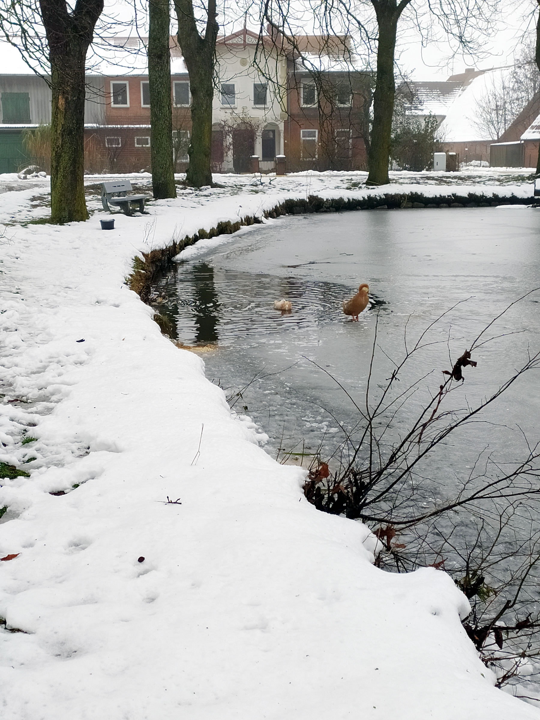 Düsse söten Deerten heff ik hüüt blangen de Straat sehn junge Robustrinder, de dat hele Johr buten sünd. Ik heff glieksen en Riemel op ehr maakt. Is Februar de Küll is aasig, Dat Bild köönt Se per Klick vergröttern! Marlou Lessing |