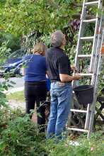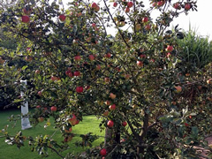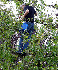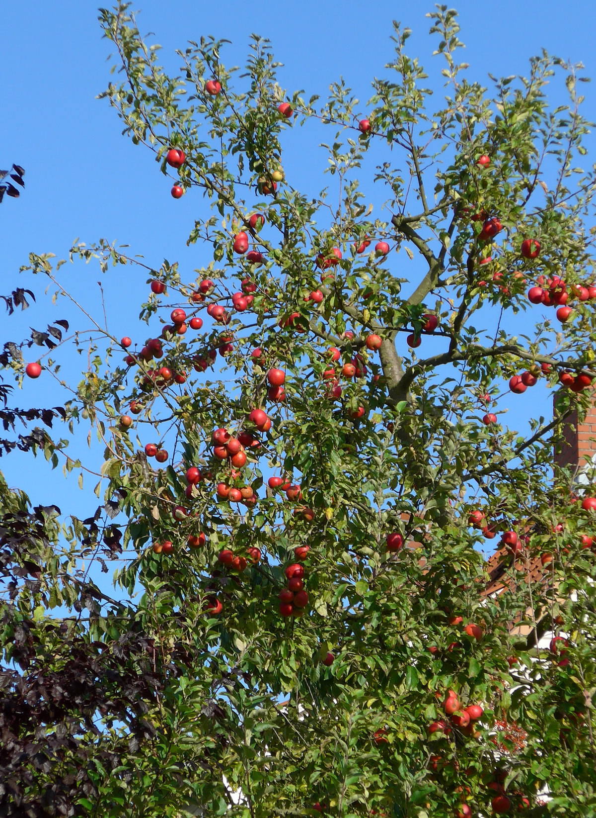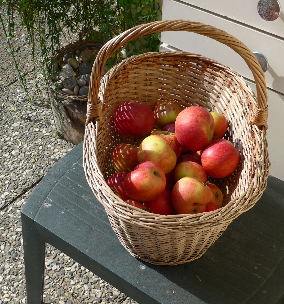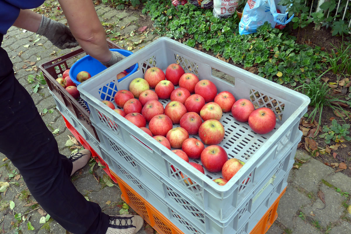 Wi hebbt denn noch över dütt un dat snackt. Dat stell sik rut, dat de beiden ok Plattdüütsch snacken. Ik heff denn noch na de Appelsort fraagt. Dat weer en Elstar! Den Boom harrn de beiden vör twintig Johr plant. Dütt Johr harr he besünners veel Appeln. De Biller köönt Se per