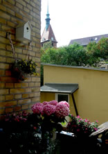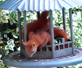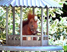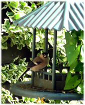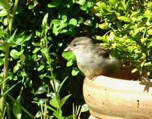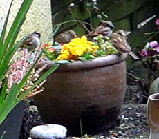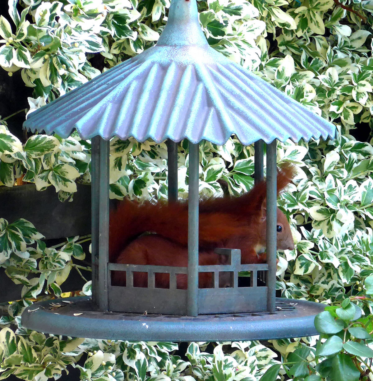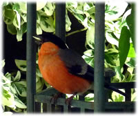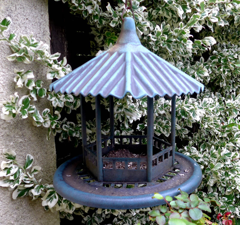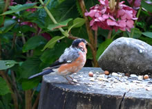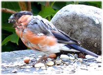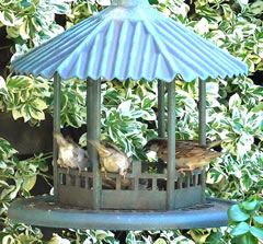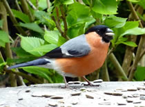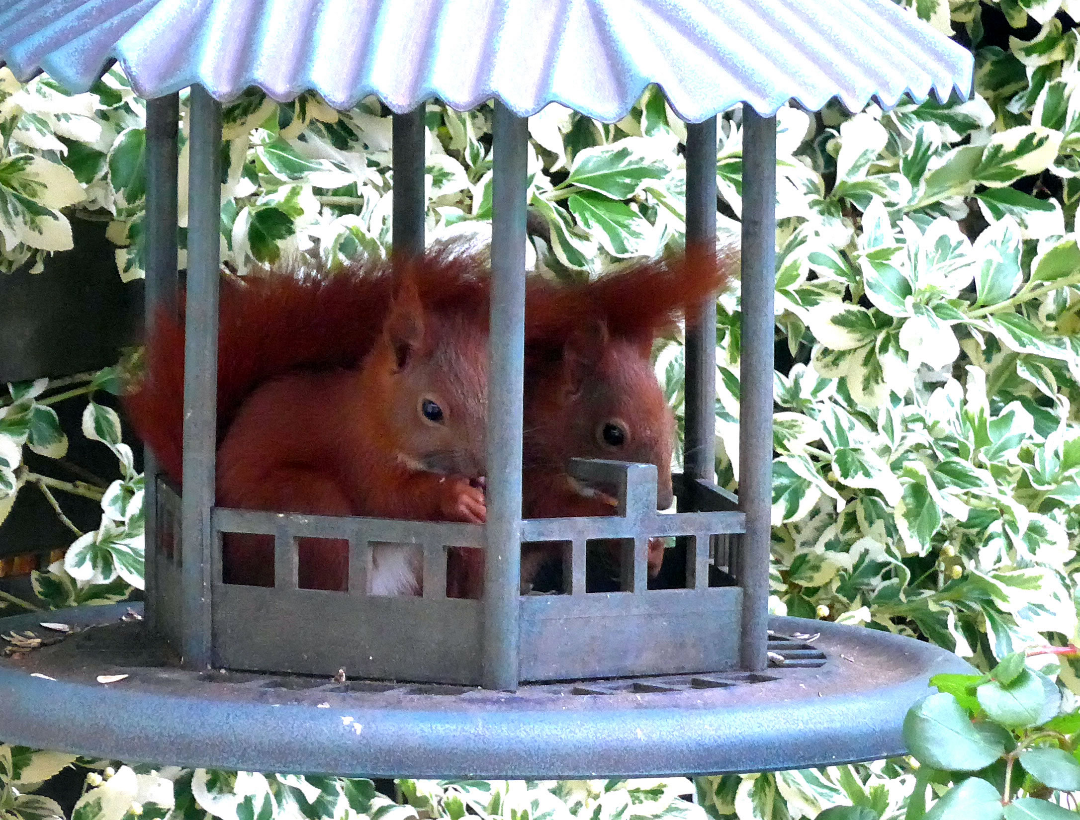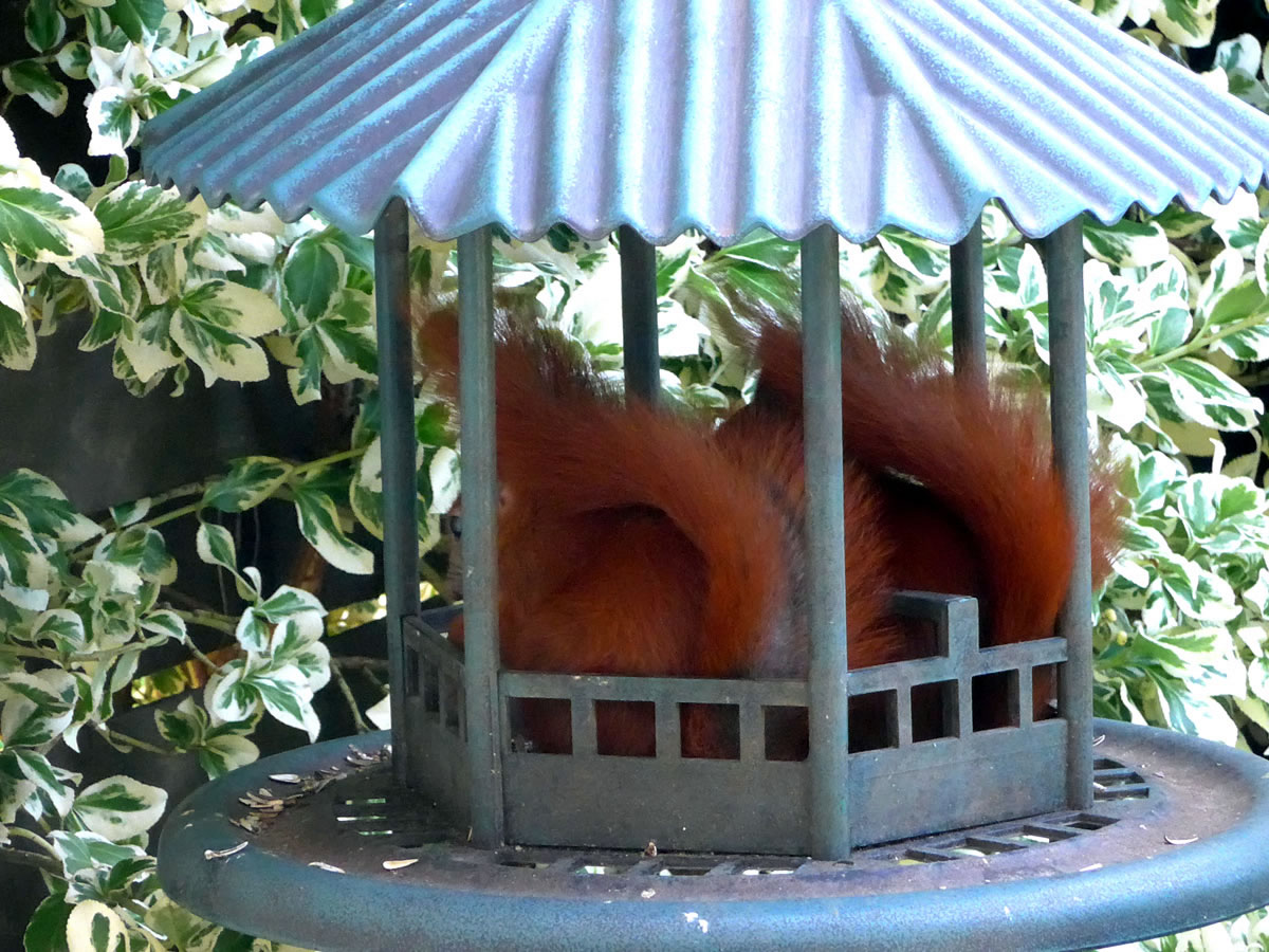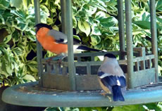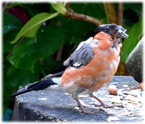 31.8.14 .... Vagelampel in'n Sommer De Vagelampel weer in't Fröhjohr eenfach up de Terrass hangen bleven. Ünner de Ampel weer en Rosenstock ranwussen. De stütt de Ampel bi Storm. Üm den Rosenstock rankel sik en Ackerwinn. Mit ehr gröne Bläder bedeck se de Galerie vun de Ampel. Dor kunnen sik de Vagels un ok anner Veehtüüch goot achter versteken. Mank dat Gröön möken sik de bunten Vagels besünners goot. Dat weer en Freud, wenn de Dompfaff sik mit sien Fru dor dat Foder haal. De beiden weern düssen Sommer besünners oft to Besöök. Een Dag bröchen se ehr Kinner mit. Twee junge Dompfaffenkinner! De seten baben up de Muur un betteln mit liesen "di, di, di" üm Foder. De Öllern keken ut de Vagelampel un locken ehr Kinner. Aver de weern noch bannig schuuch. Se leten sik noch dat Foder vun de Öllern bringen.