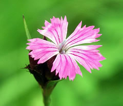. Karthäuser-Nelke Anner Namen: Blutnelke, Steinnelke, Blutströpfchen, Blitzblümchen, Donnernelke Wi weern poor Daag up Usedom. En vun ehre Halfinseln de "Zacken" heet "Gnitz". Wi föhrn mit uns lütt Auto so wiet up disse Halfinsel rup, as dat güng, denn stellen wi dat af un lepen quer dörch de Natur, över enge Trampelpfade, lütte Weeg, över Feller, Heide, Wald. Wi kemen an en Över, an dat ik lialütte Muscheln funnen heff. Disse Muscheln harr ik noch nie nich sehn. Gedüllig tööv mien leef Mann, bet ik poor Muscheln sammelt harr. Wi klattern up en Düne, so'n Ort Steilöver. Uns Ogen freuen sik an all dat Schöne rundüm. Sogoor en Seeadler wies sik. Wi hebbt enen groten Bagen slagen un sünd up en anner Fährte trüch lopen. In de Twischentiet weer't fix warm worrn. Up den Trüchweg heff ik en lüchen pinkfarven Bloom entdeck. Wi weern de Meen, dit kunn ene Nelke sien. Se weer heel slicht, man ehre Farv weer wunnerschöön un intensiv. Later heff ik up en Tafel leest, dat hier noch de rore Karthäuser-Nelke vörkümmt. Dat warrt se denn wohl west sien. Ik heff leest, dat de Karthäuser-Nelke fröher in elkeen Klostergoorn to finnen weer. Dat kann denn aver blots to'n Smücken west sien; denn en Heilplant is se so veel as ik weet nich. Ik kann mi aver vörstellen, dat ehr Naam dordörch entstahn is. De Volksmund seggt, dat de Karthäuser-Nelke oft dor wasst, wo de Blitz geern insleit. Dor kaamt denn wohl de volkstümlich Namen "Blitzblöömken" un "Donnerbloom" her. De Karthäuser-Nelke blöht vun Juni bet September un se verströömt en lichten angenehm Duft. Se weer 1989 de Bloom vun't Johr ("Blume des Jahres"). De Blöden vun de Karthäuser-Nelke staht in de Tiet vun 10°° bet 22°° wiet apen. Denn maakt de Plant de Blöden dicht. Un ut dissen Grund kunn de Plant as Tiet-Ansaag bruukt warrn. Carl von Linné (1707-1778) hett dit Besünnere vun de Plant markt, faststellt, un is so up de Idee vun en Blomen-Klock kamen. Anke Nissen