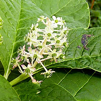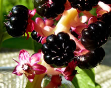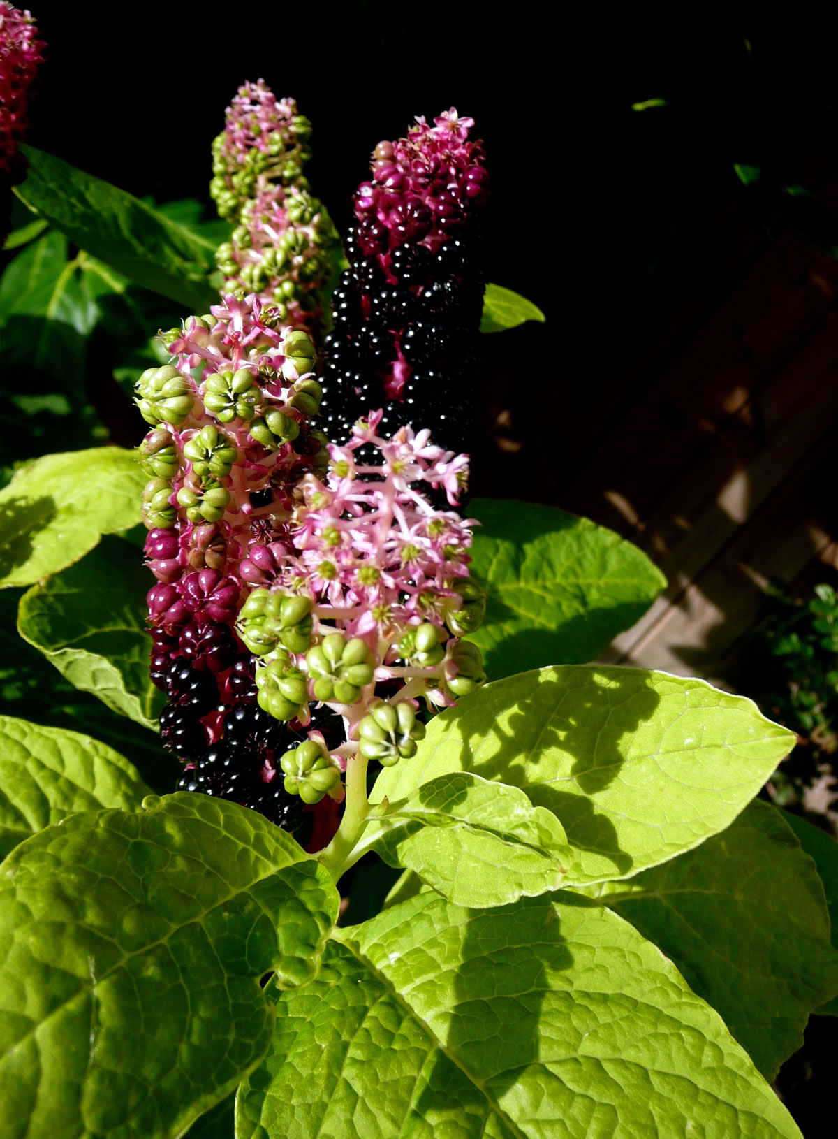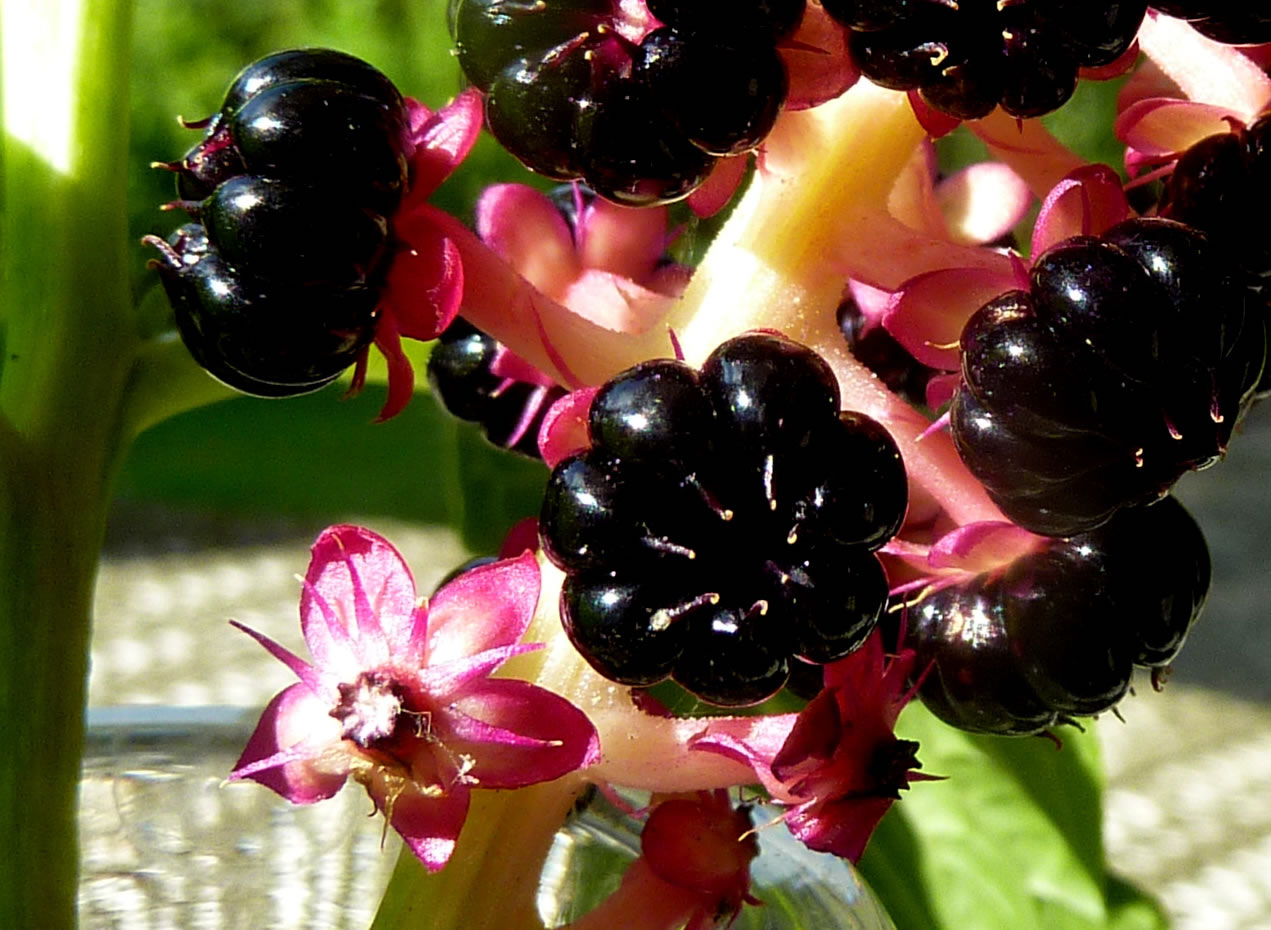 In mien Blomenbook heff ik de Plant nich funnen. Na veel Frageree in'n Fründeskreis kreeg ik den Naam Kermesbeer ruut. "De faat blots nich an, de is giftig!", wöör ik denn glieks wohrschuut. Harr mien Mann mit "Unkruut" recht? Dat hett mi natüürlich besünners neeschierig maakt.