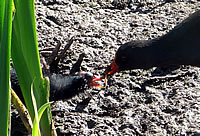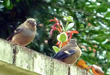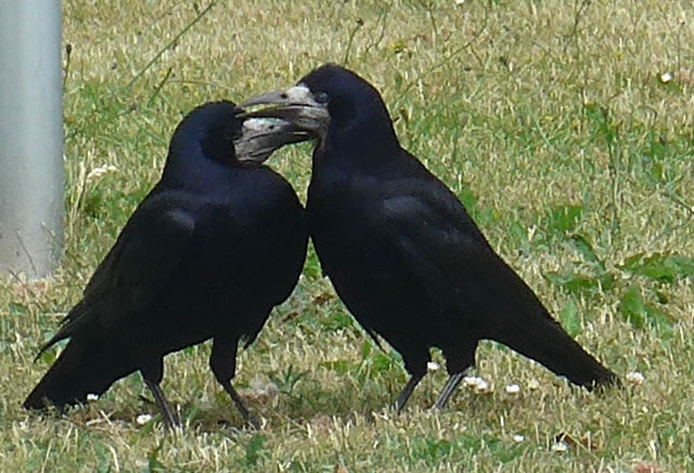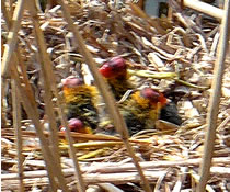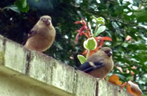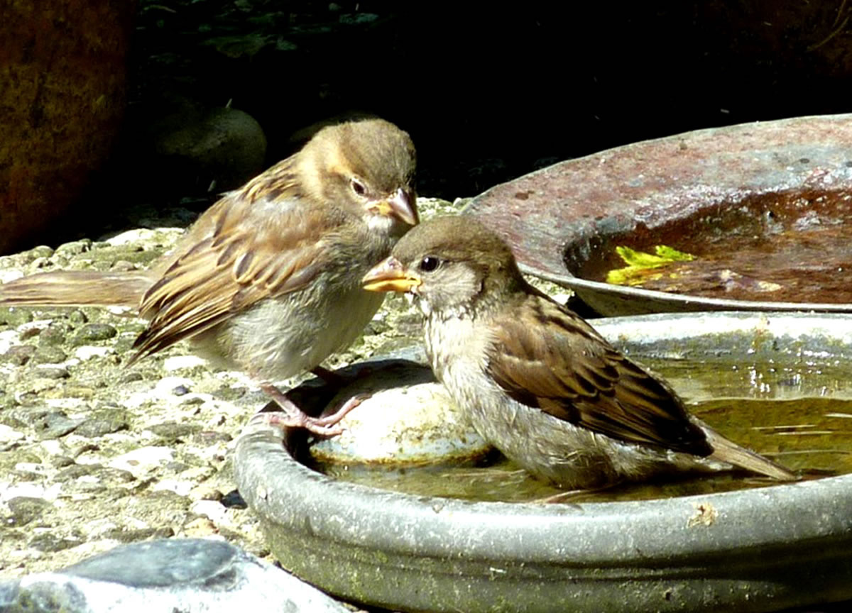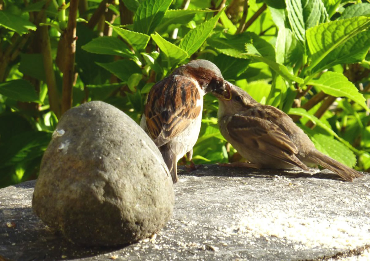 De Jungvagels harrn noch keen buntes Fedderkleed. Ok fehl de swatte Mütz up den Kopp. Se flögen geern up den Bodden un picken sik door mit den kräftigen Snavel de Köörn up, de de annern Vagels översehn harrn. Dor föhlen de beiden sik sekerer. Na de Vagelmauser kriegt de Jungvagels ok bunte Feddern. Denn köönt wi de Kinner nich mehr vun de Öllern ünnerscheden. Hoffentlich blievt se bi uns!
