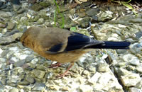 De een hett wohrhaftig en lütt Stück Brot funnen. An Delen dach he aver nich! He flog gau wieder. Up enen lütten Boom hett he dat Brot alleen freten. De Biller köönt Se per Klick