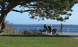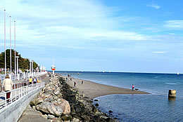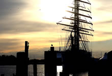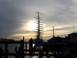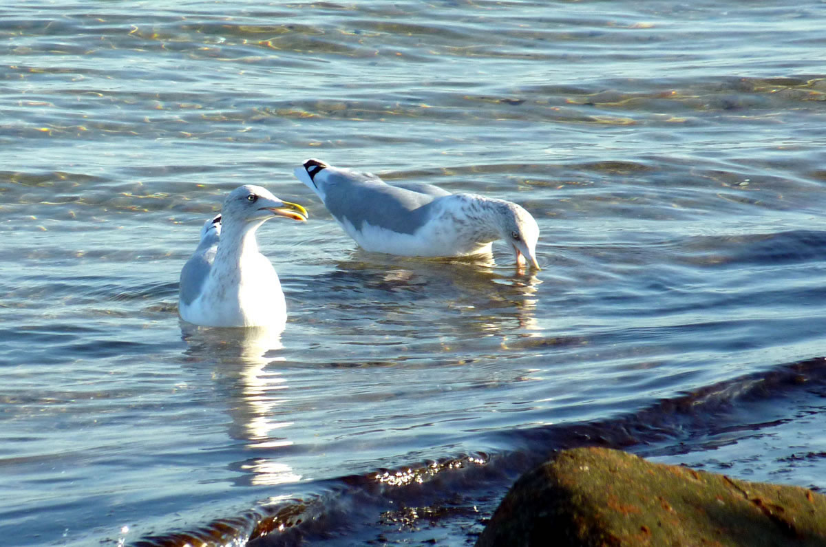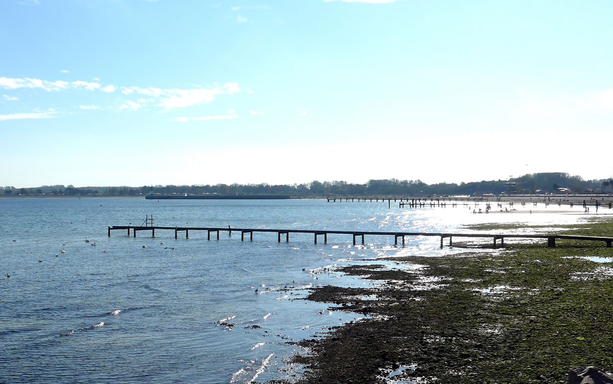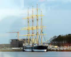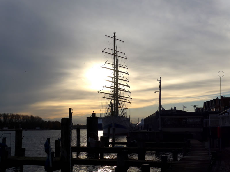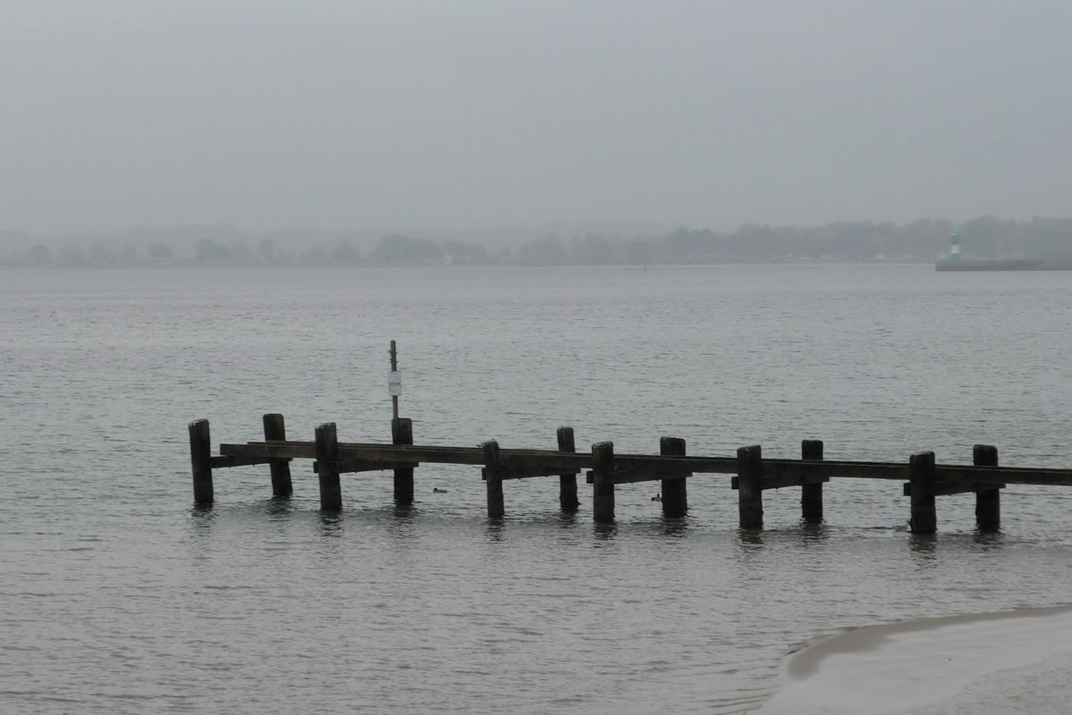 Jüüst heff ik in't Fernsehn enen wunnerboren Reisebericht sehn. Dat güng in de Süüdsee! Herrlich! Dor müss ik an mien güstrigen Dag dinken. Dat güng nich in de Süüdsee! Aver dat güng an de Traav. Dor hebbt wi up en Schipp, dat as Lokal ümbuut is, uns Meddag eten. De Sünn harr sik dörch de Wulken en Lock maakt. Dat Water vun de Traav glitzer. In den Sünnenschien kunnen wi dörch dat Finster de Passat sehn. Se leeg vör den Niebuu vun den Priwall. Immer wedder dükern Kormorane mit lütte Fisch up. Gau weern se in ehren Slund verswunnen. Intwischen weer unser Eten ok up den Disch. Dat geev Gröönkohl! Un de hett smeckt! Aver ümmer wedder güng unsen Blick ut dat Finster. Dor seet en Mööv up enen Poller. De harr uns ok al sehn. Un ümmer wedder dükern de Kormorane up.