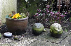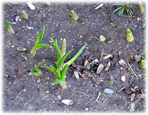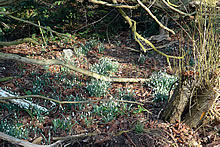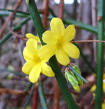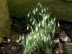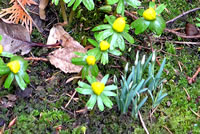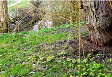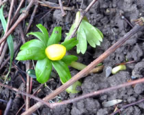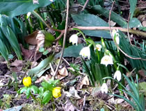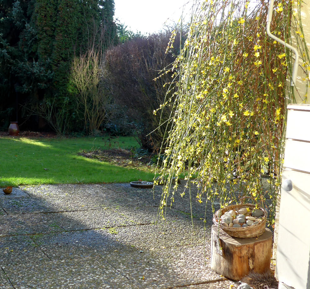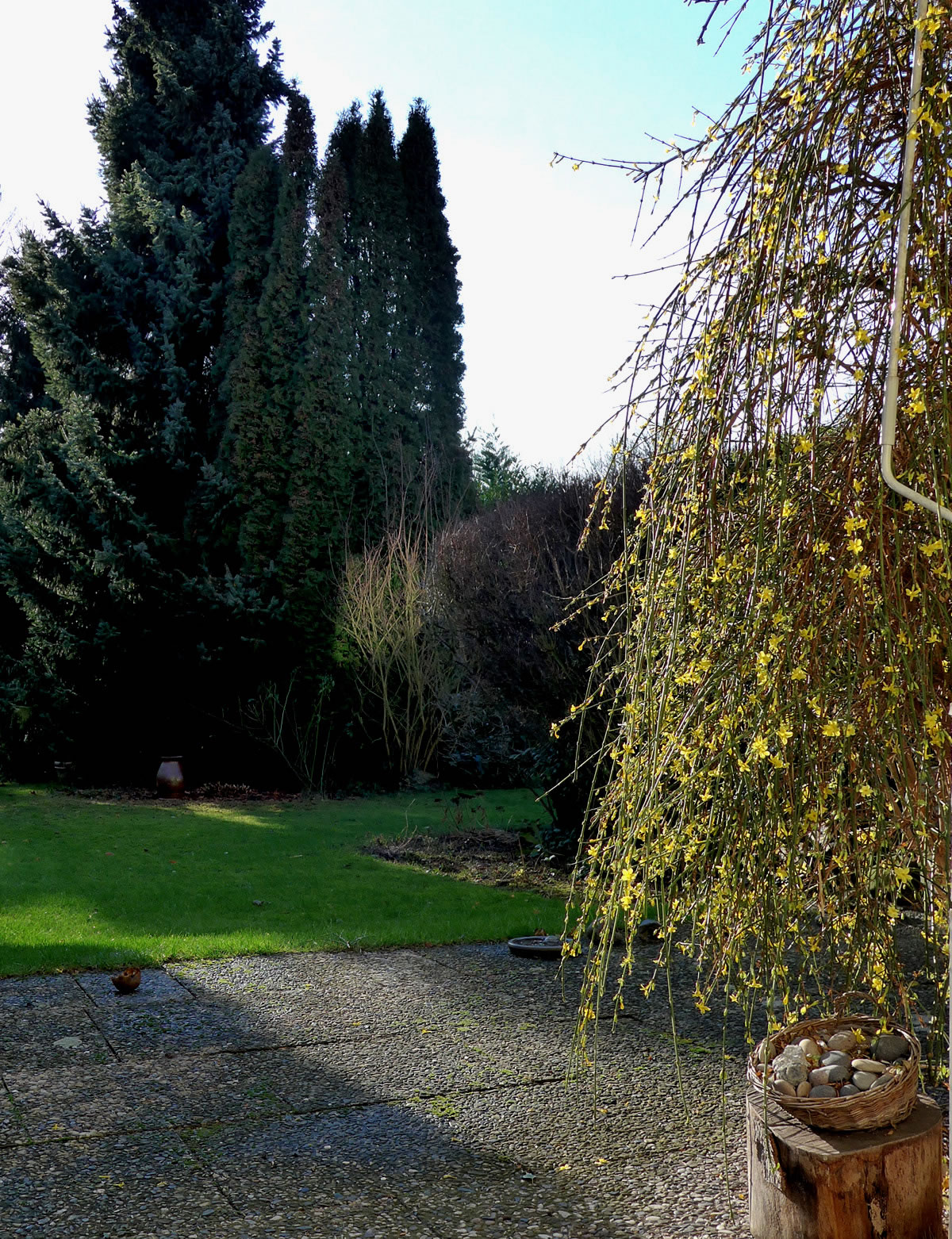 Forsythie stünn en lütten swatten Putt de weer mit Sneeklocken