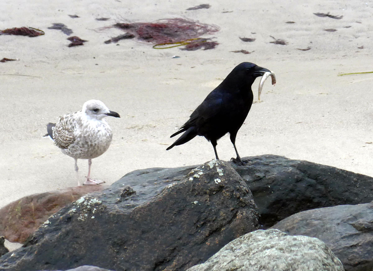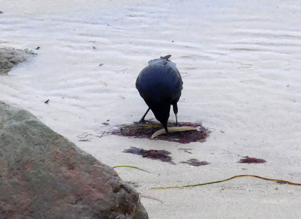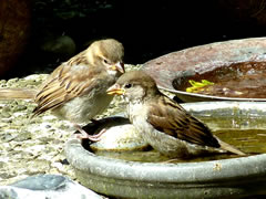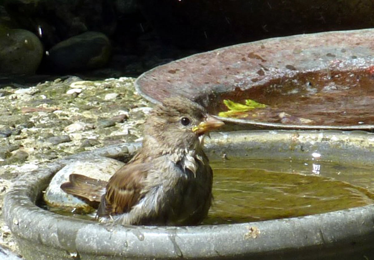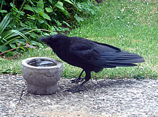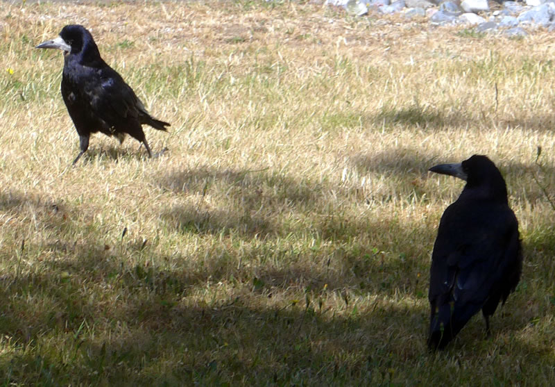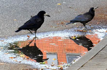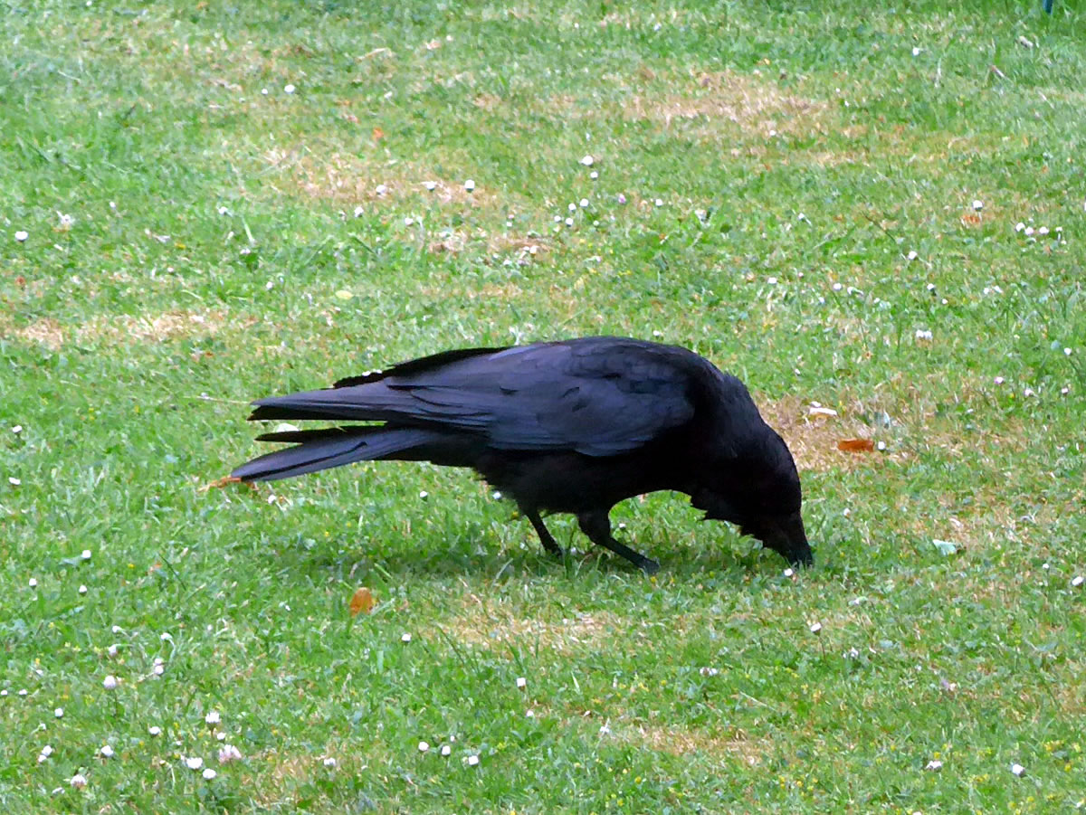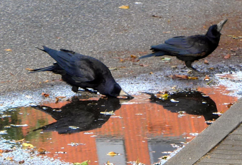 De letzten Daag harr de Sünn dat goot mit uns meent. Dat weer bannig warm worrn. Ok de Kreihn söchen na Water un wat to Freten. De Gassen weer noch nich afmeiht. Villicht funnen se wat Freetbores mank de Buurnhüüs. De beiden Verleevten bleven up den verdrögten Rasen. Se harrn en grote Waterpütz an Wegrand funnen. Dat weer doch wat! Toeerst nehmen se enen dücktigen Sluck. Denn dükern se ünnert Water. Dat weer schöön! Dat Water weer so sauber un so blank. Se kunnen sik in de Pütz spegeln. Nu kunnen se wieder Futter söken. Vör de Schüün funnen se Brotresten. Mit grote Schreed söchen se de Wiesch af.