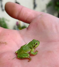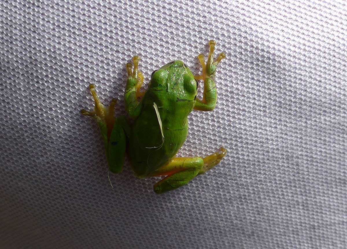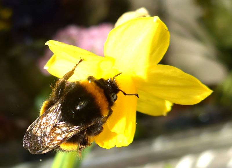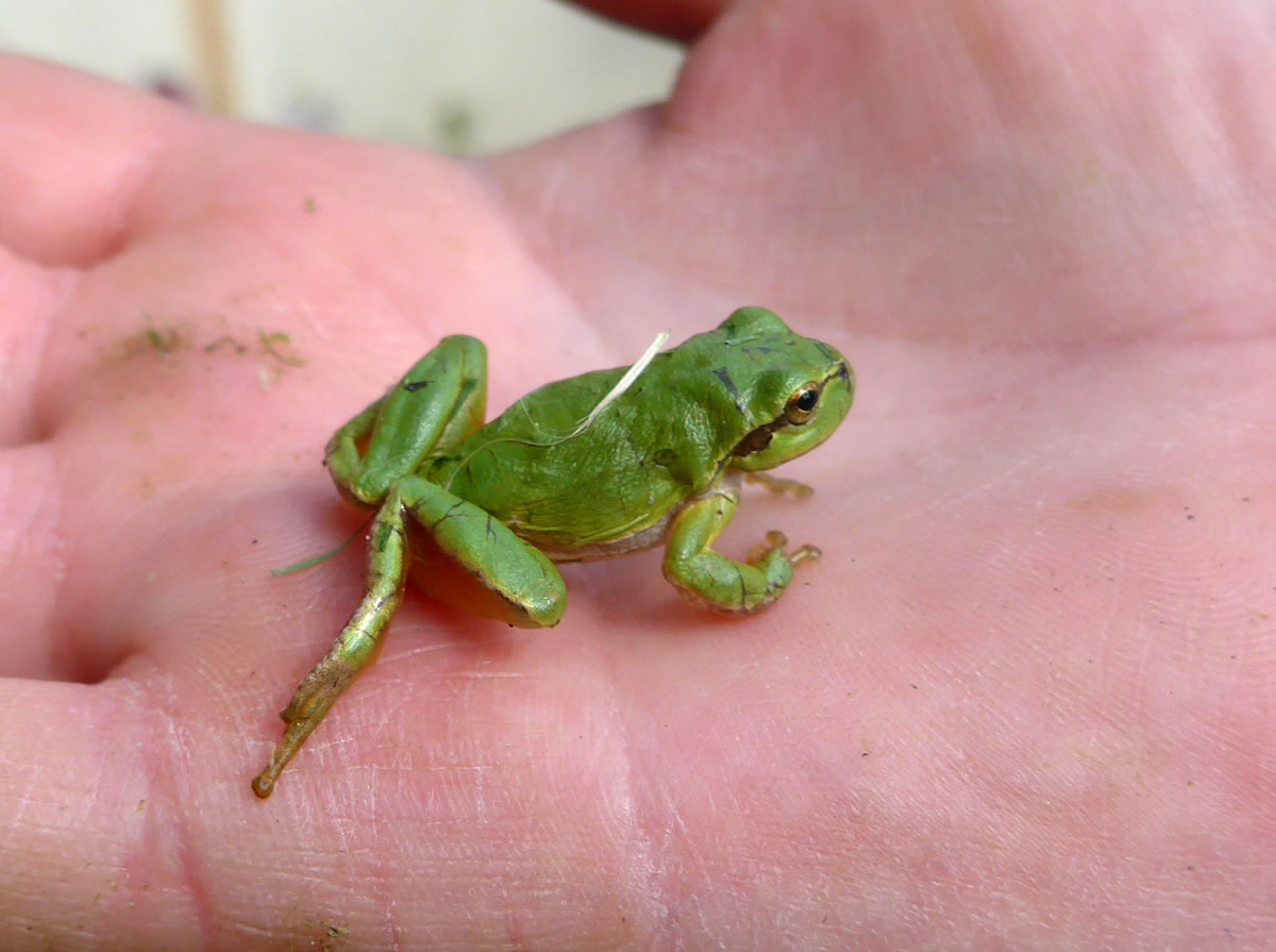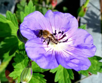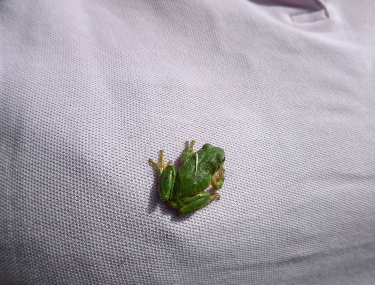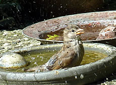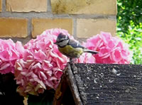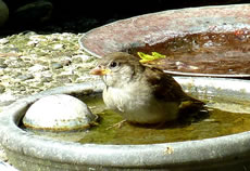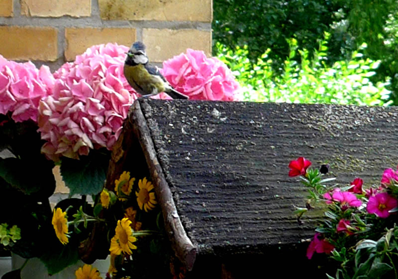 He flöög glieks hoch in de Luft un stüür dat Blomenbeet an. Dor hett he sik dat goot gahn laten. Ik weer froh, dat ik em helpen kunn, un heff mi mien Fröhstück achterna goot smecken laten. De Biller köönt Se per Klick