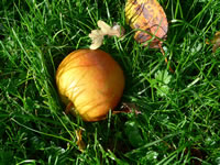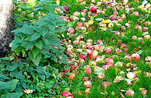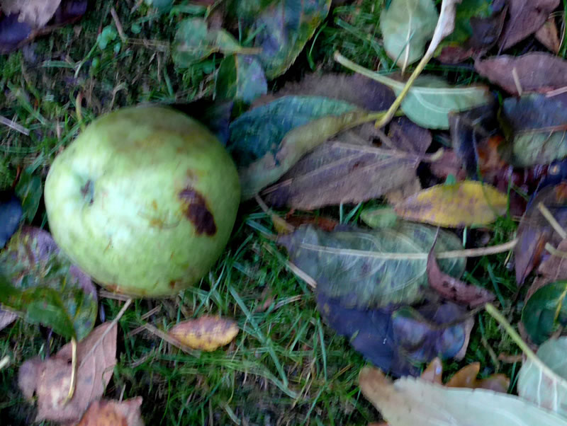rode Appeln an. An den een Boom hüngen Glieks stopp ik dat Auto un stell dat an den Stratenrand af. Mien Büdel harr ik gau mit Appeln füllt. Hüüt hett sik dat richtig lohnt! Nu keek ik mi nochmal de smucken Harvstastern an. Dor sett sik jüst en Admiral up daal. Sloog sien Flünken up un to un bleev sitten. He leet sik knipsen. Tofreden güng ik na Huus. Neegsten Dag wull ik mi wedder vun dat Fallaavt halen. Dor stünn en Ledder an den Appelboom mit de roden Appeln. Op de Ledder stünn de Naver un plück ievrig dorvun. "Kommen Se ruhig näher und sammeln sich welche vun den Äpfeln auf!", keem en Stimm ut den Boom. Ik nix wi hin, dat leet ik mi nich tweemal seggen. Vun de roden Appeln harr ik geern noch welk. De smecken mi besünners goot. Ik harr se güstern prövt. Bumms!, möök dat dor, un mi full en Appel up den Kopp. De Naversfru keem glieks to Hölp. "Haben Sie sich weh getan?" Ik schüddel den Kopp.