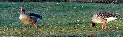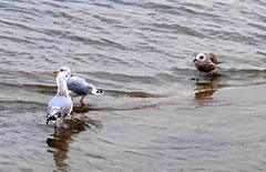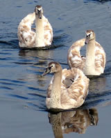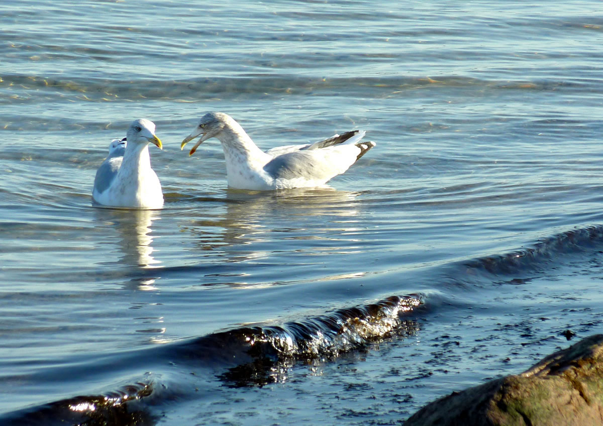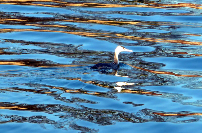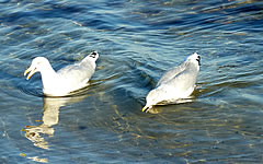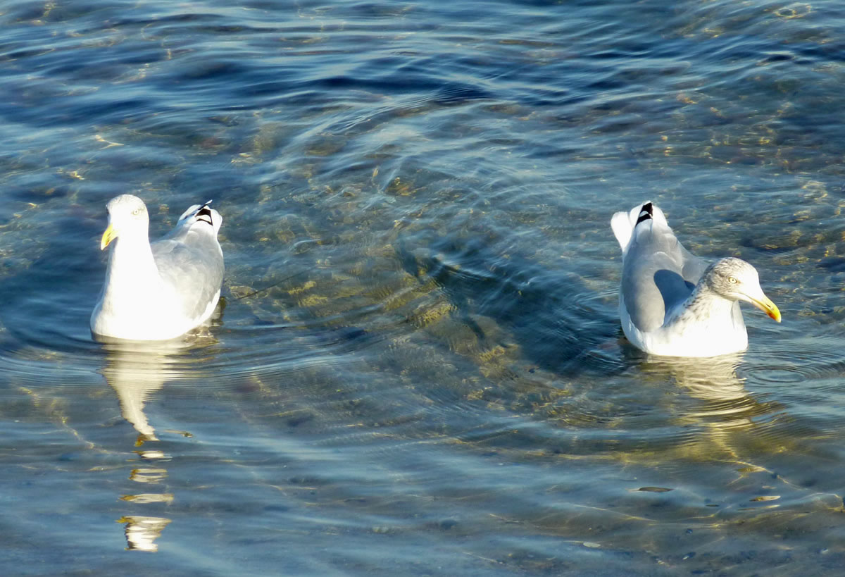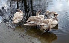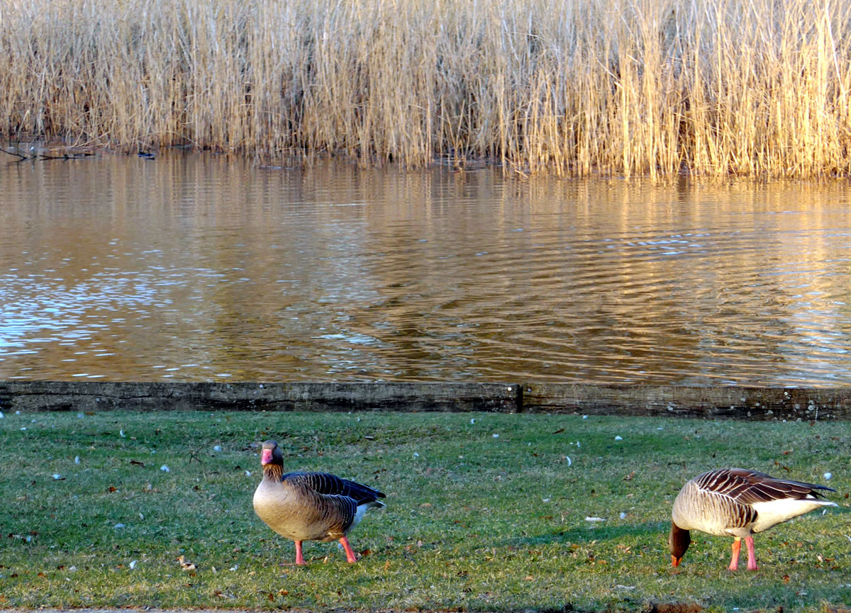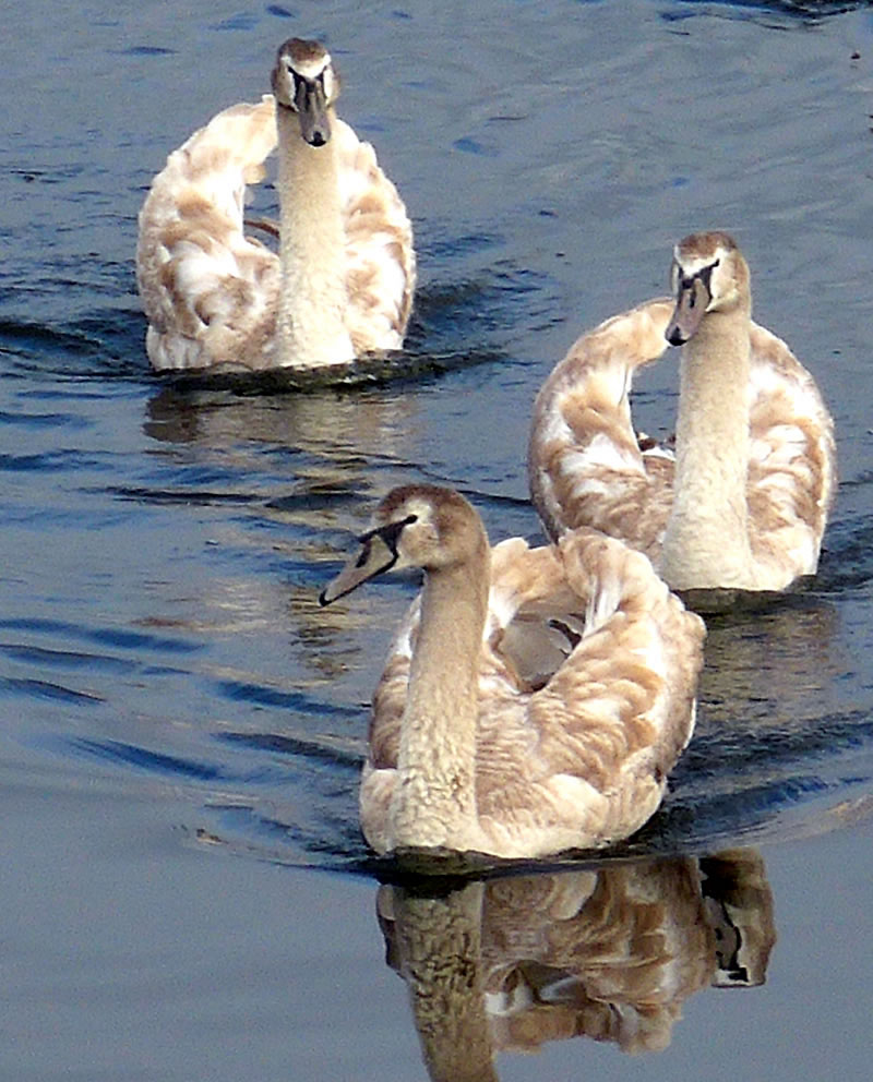 Wat en Glück, dat he dor sien Vadder dreep. De hett em bi dat Söken na Foder holpen. Dat weer doch ornlich wat lichter. In dat Waterbecken weern ok noch anner Watervagels. Swaans mit fief Kinner, Haubentaucher un noch welk ut sien egen Verwandschaap. Dor weer ornlichen Betrieb. Wenn se satt weern güng dat up so'n Steensockel in de Sünn.. Dat Fedderkleed müss doch drögen. De niegen Feddern pieksen dörch de Huut un dat jöök. Blessi kunn sik kuum bargen. He verdreih den Kopp un dreih sik hin un her. He versöch ümmer wedder de lästige Jöökeree los to warrn. Endlich harr he dat Geföhl, dat he keen niegen Feddern mehr kreeg un de annern sauber weern.Dat harr he vun sien Modder lehrt. He jump wedder in't Water. Dor luur al sien Vadder up em. Se müssen doch den See noch na niege Foderstellen afsöken! De Biller köönt Se per Klick